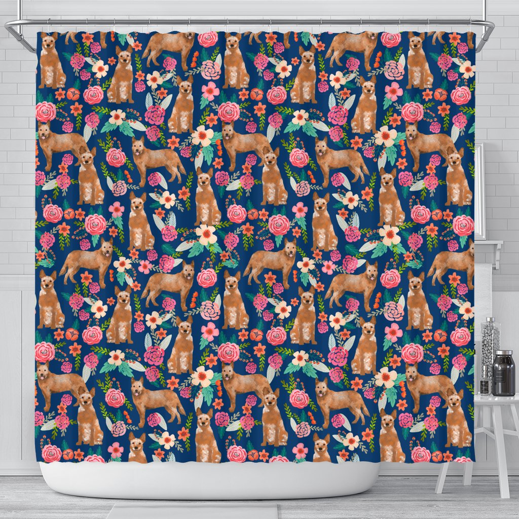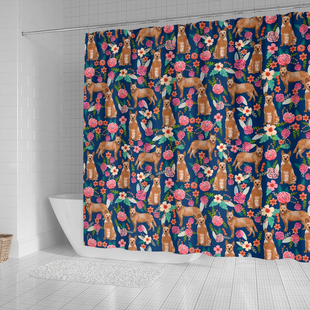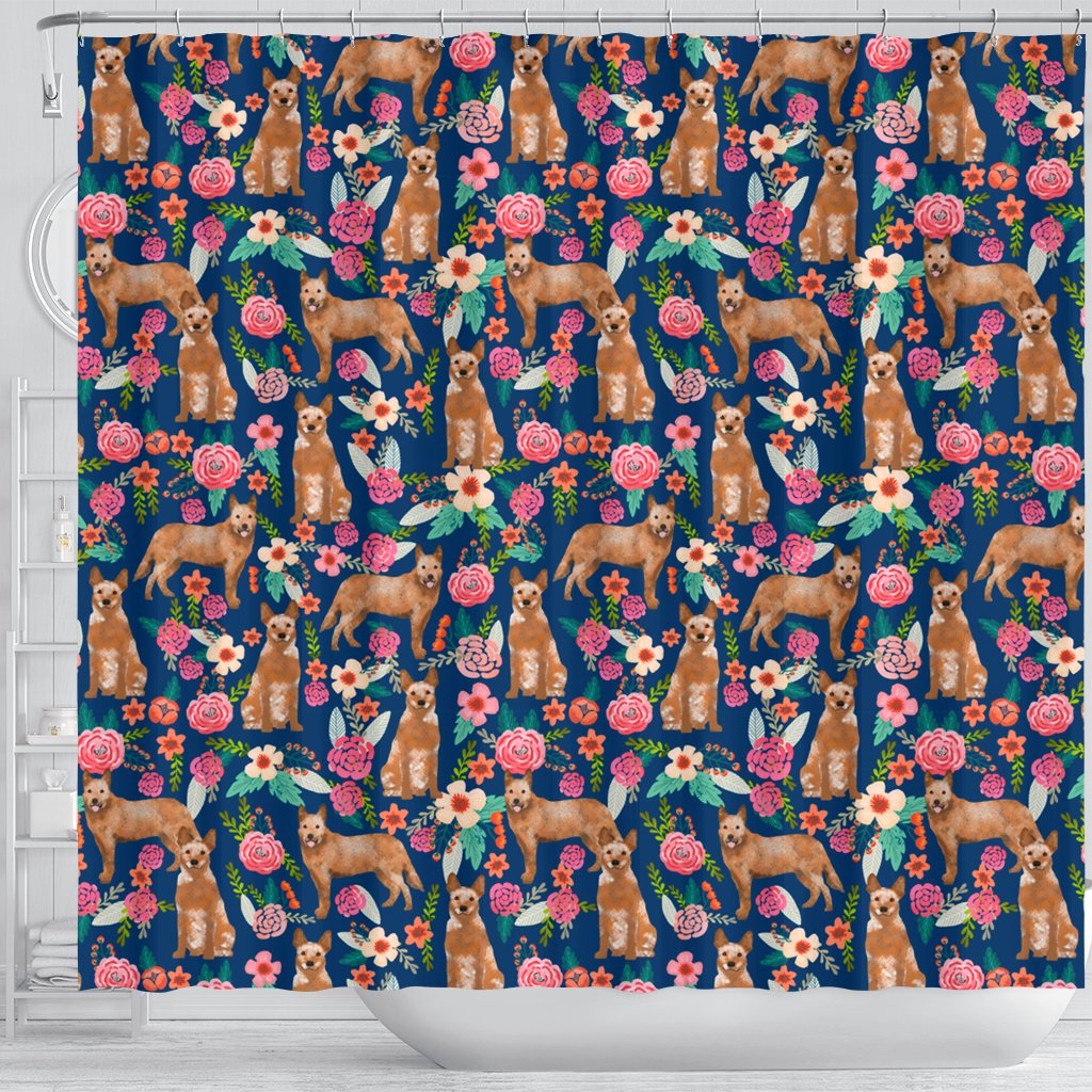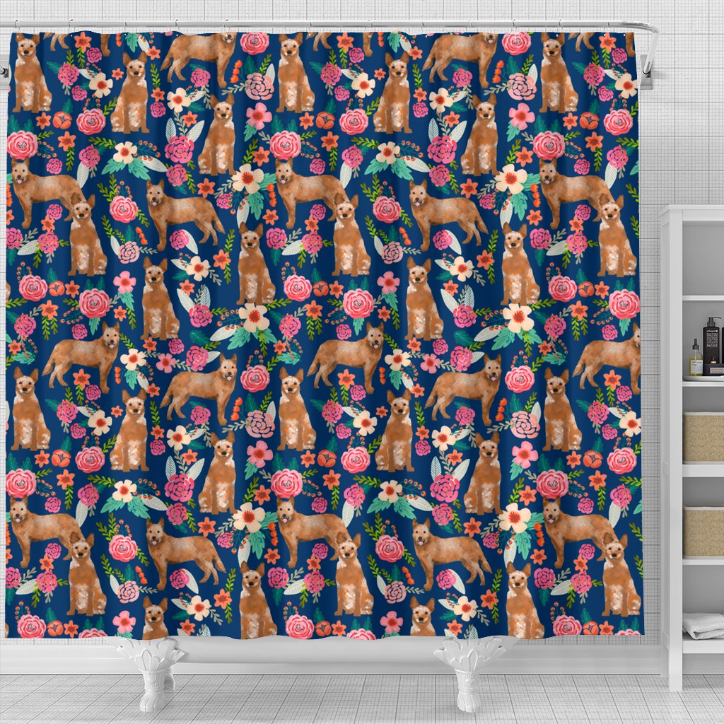 Australian Cattle Dog Floral Print Shower Curtains-Free Shipping