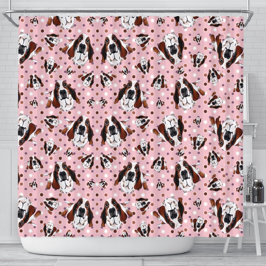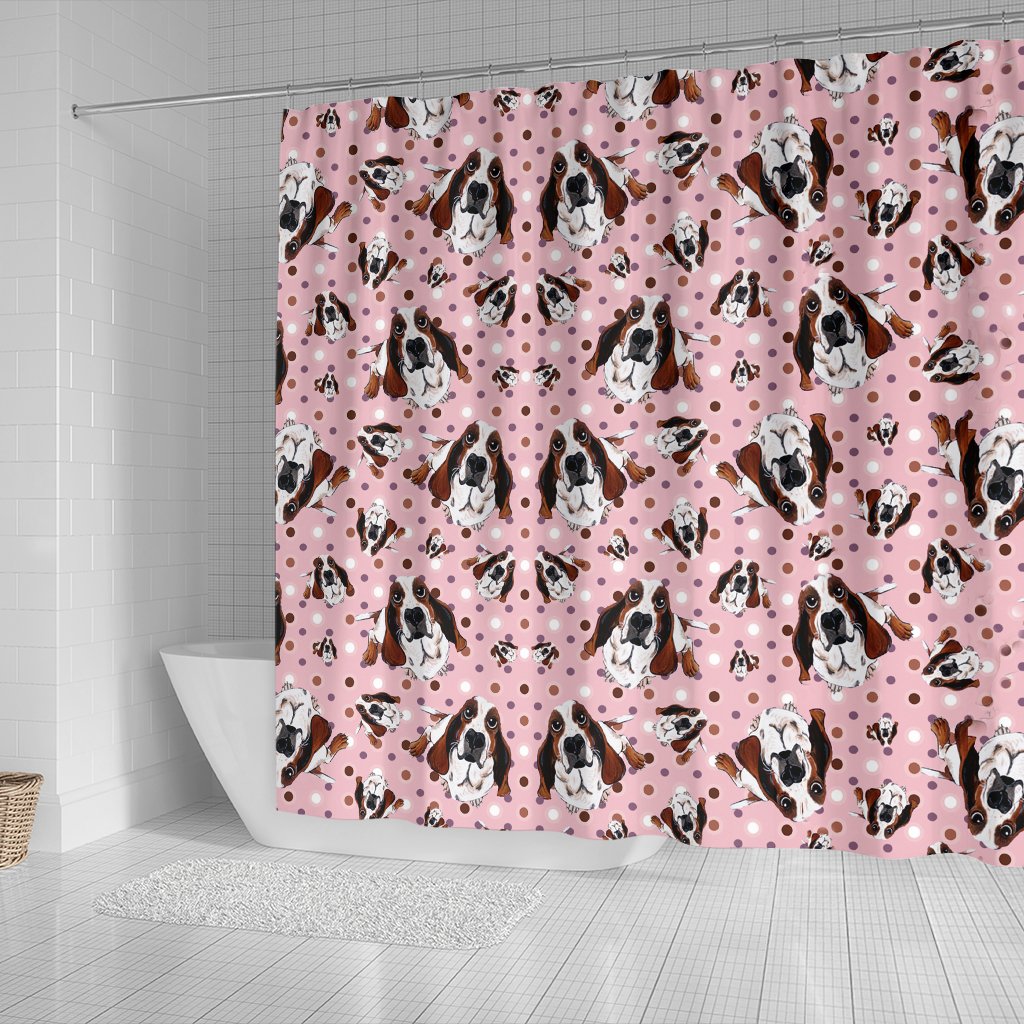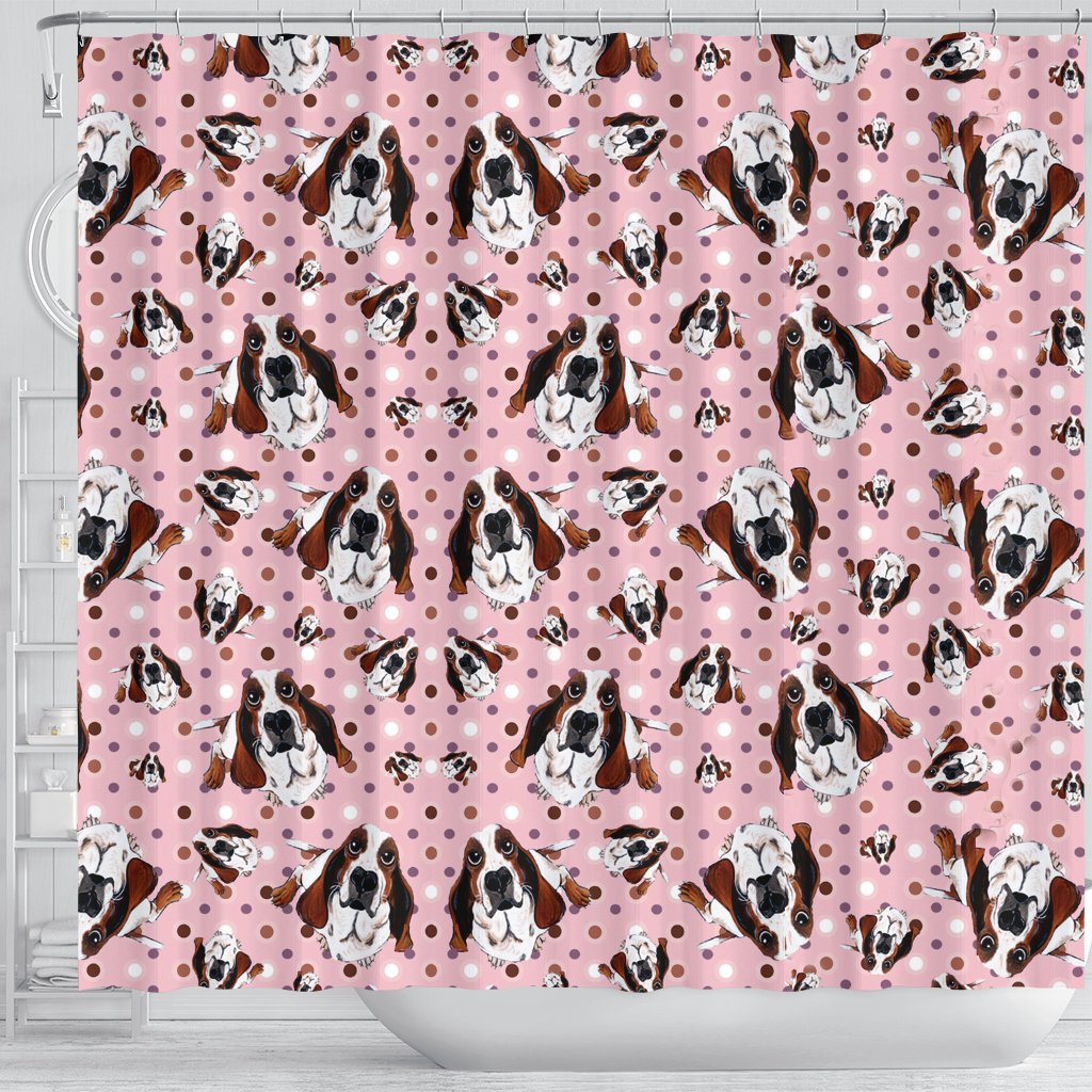 Basset Hound Dog In Lots Print Shower Curtain-Free Shipping