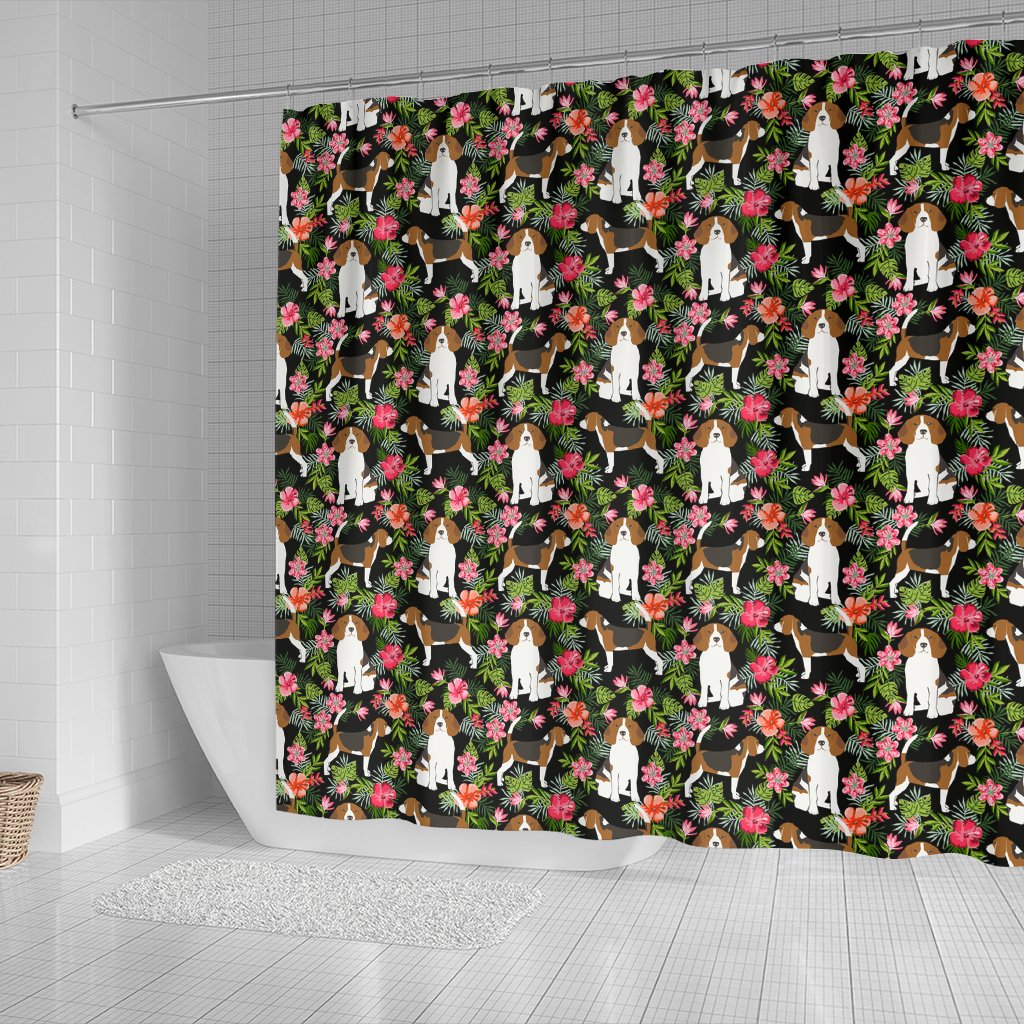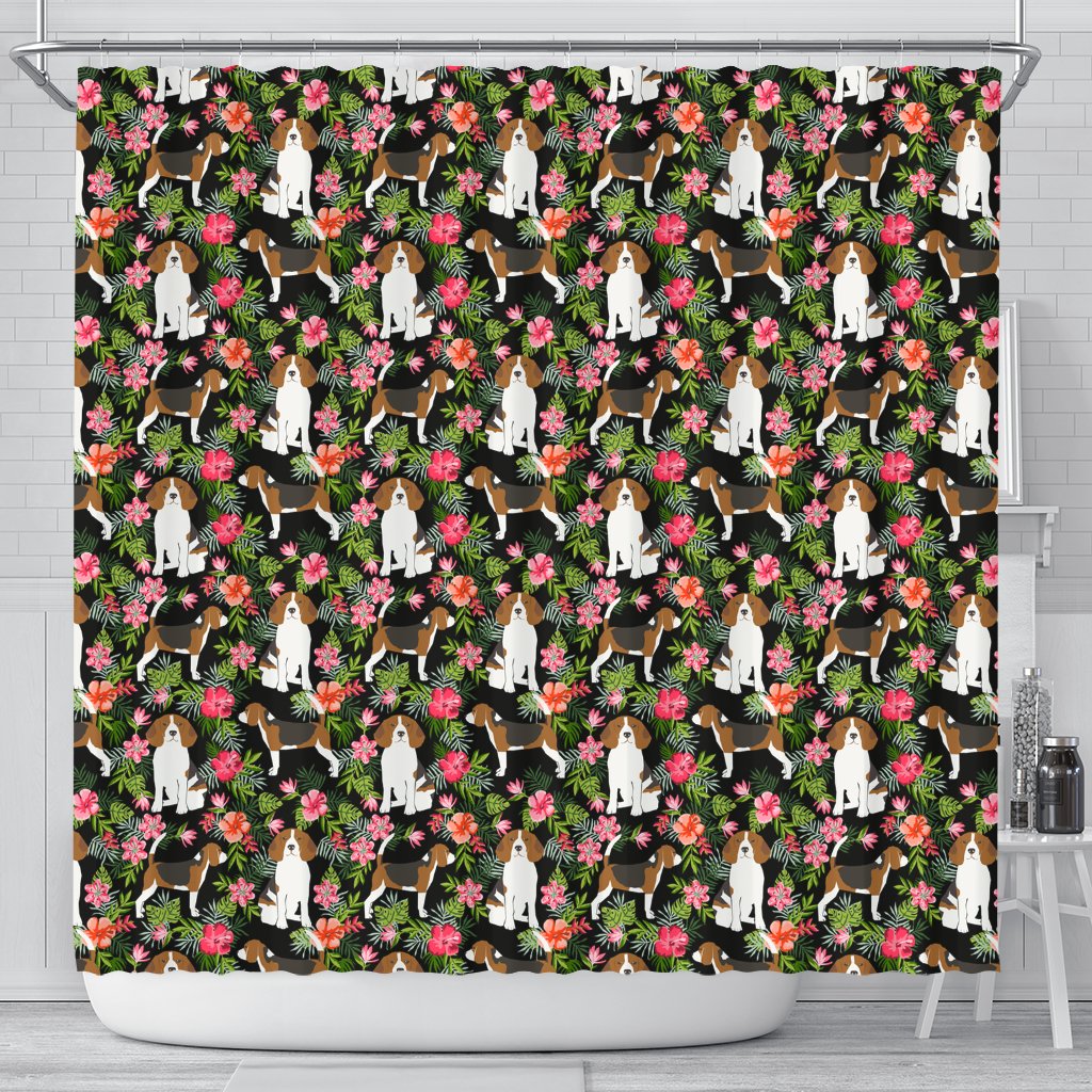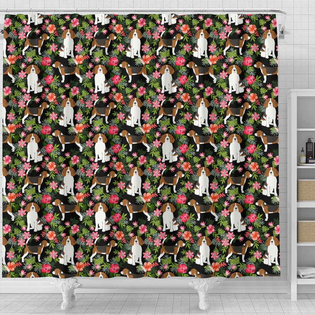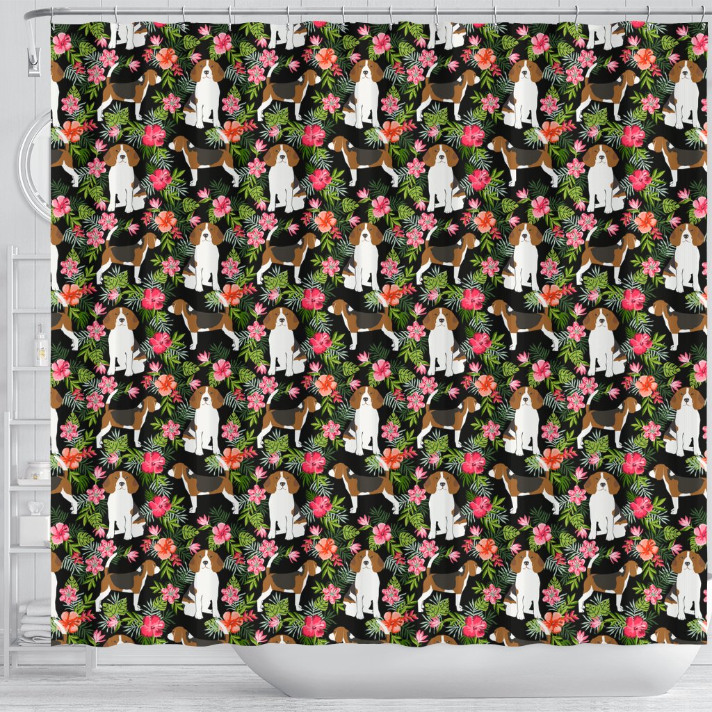 Beagle Dog Floral Print Shower Curtains-Free Shipping