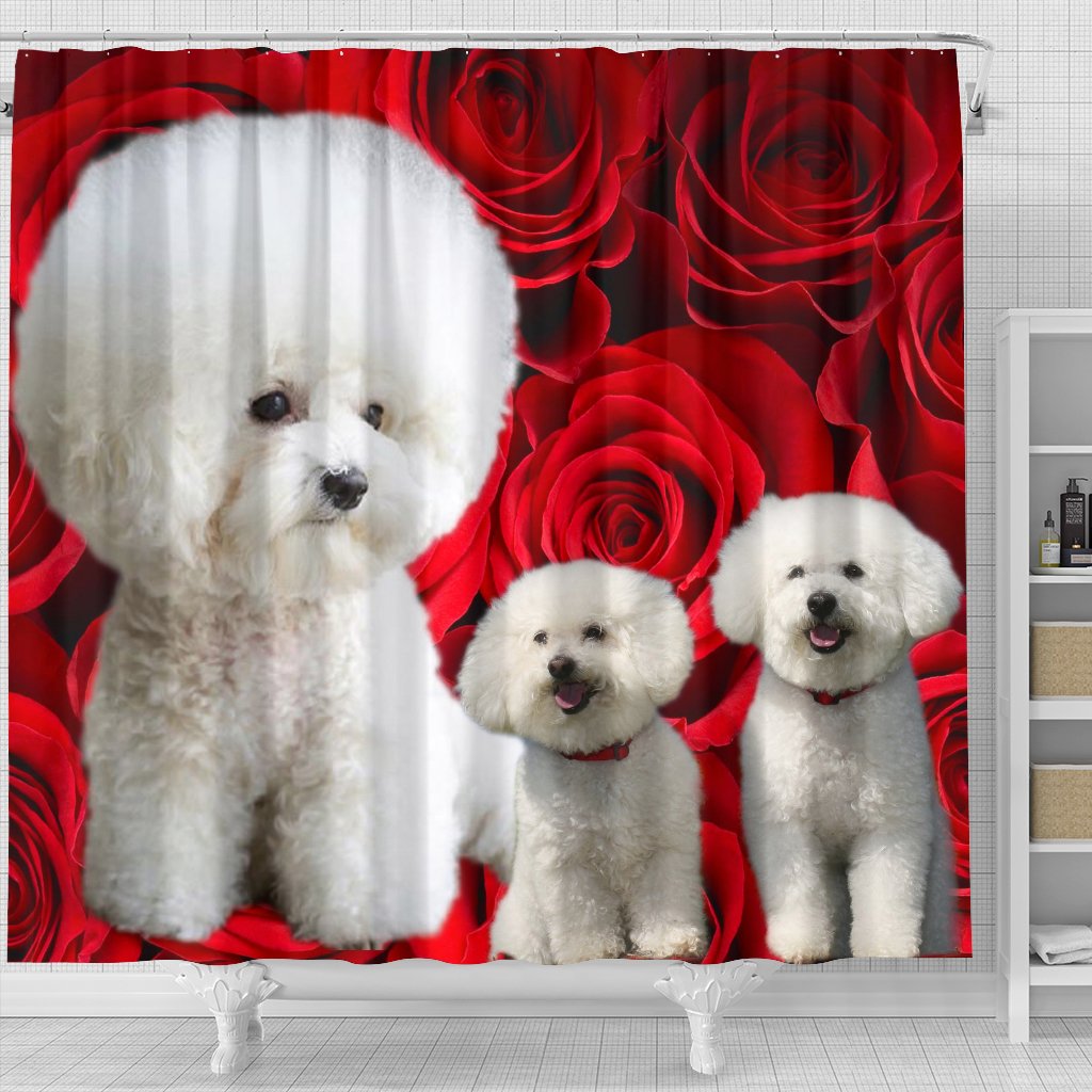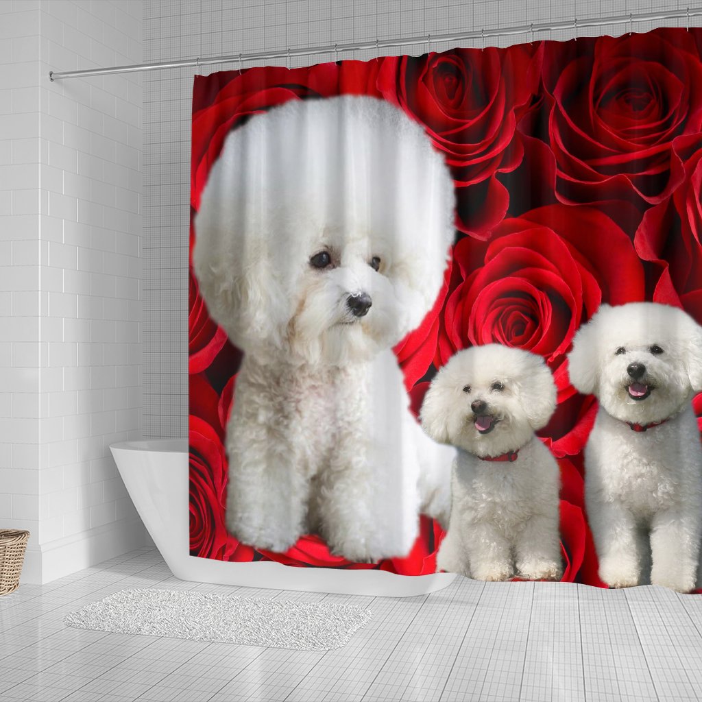 Bichon Frise On Rose Print Shower Curtain-Free Shipping