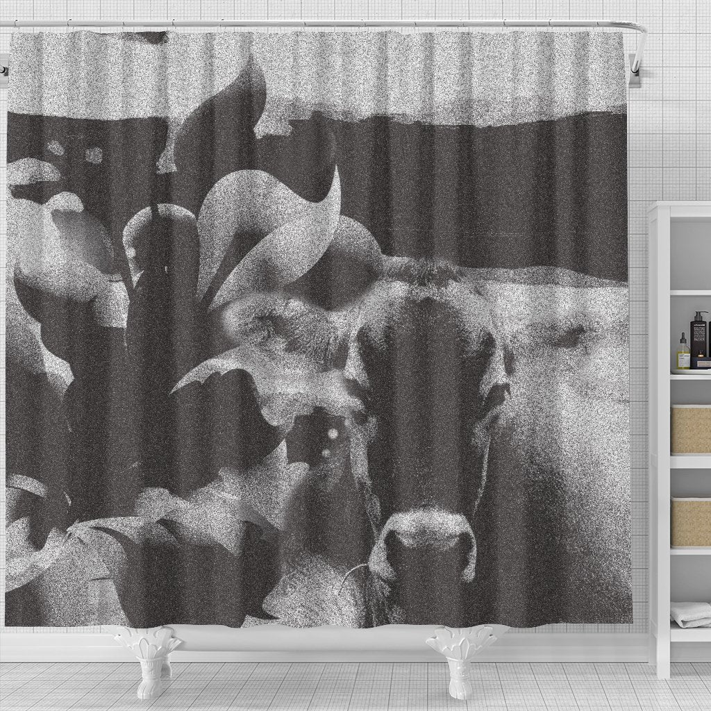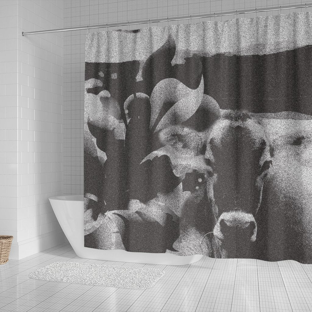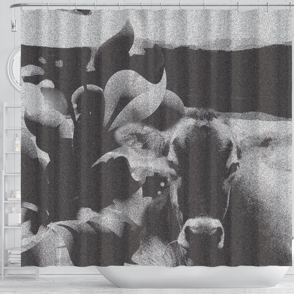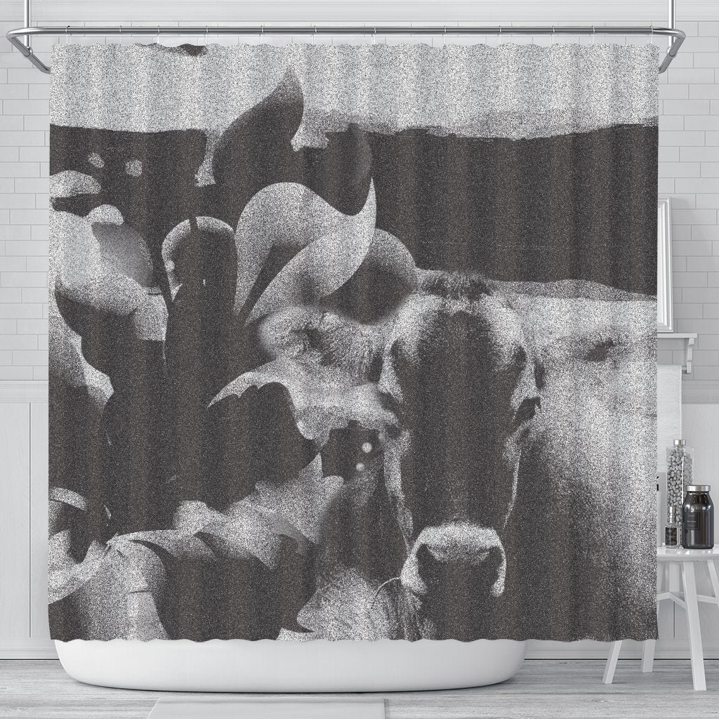 Black&White Brown Swiss cattle (Cow) Print Shower Curtain-Free Shipping