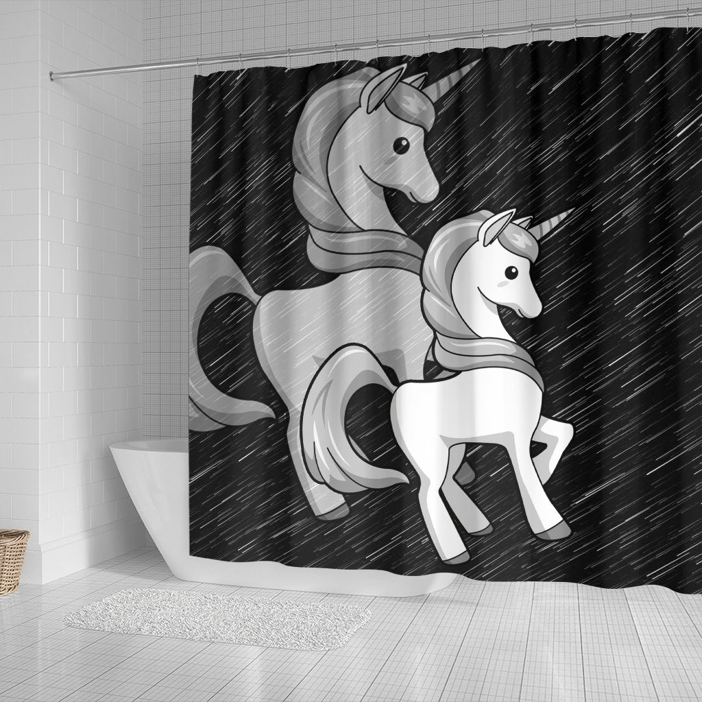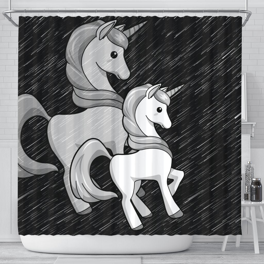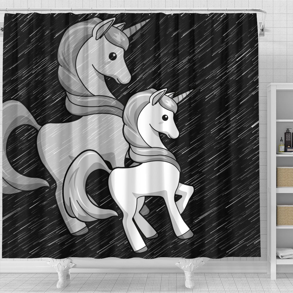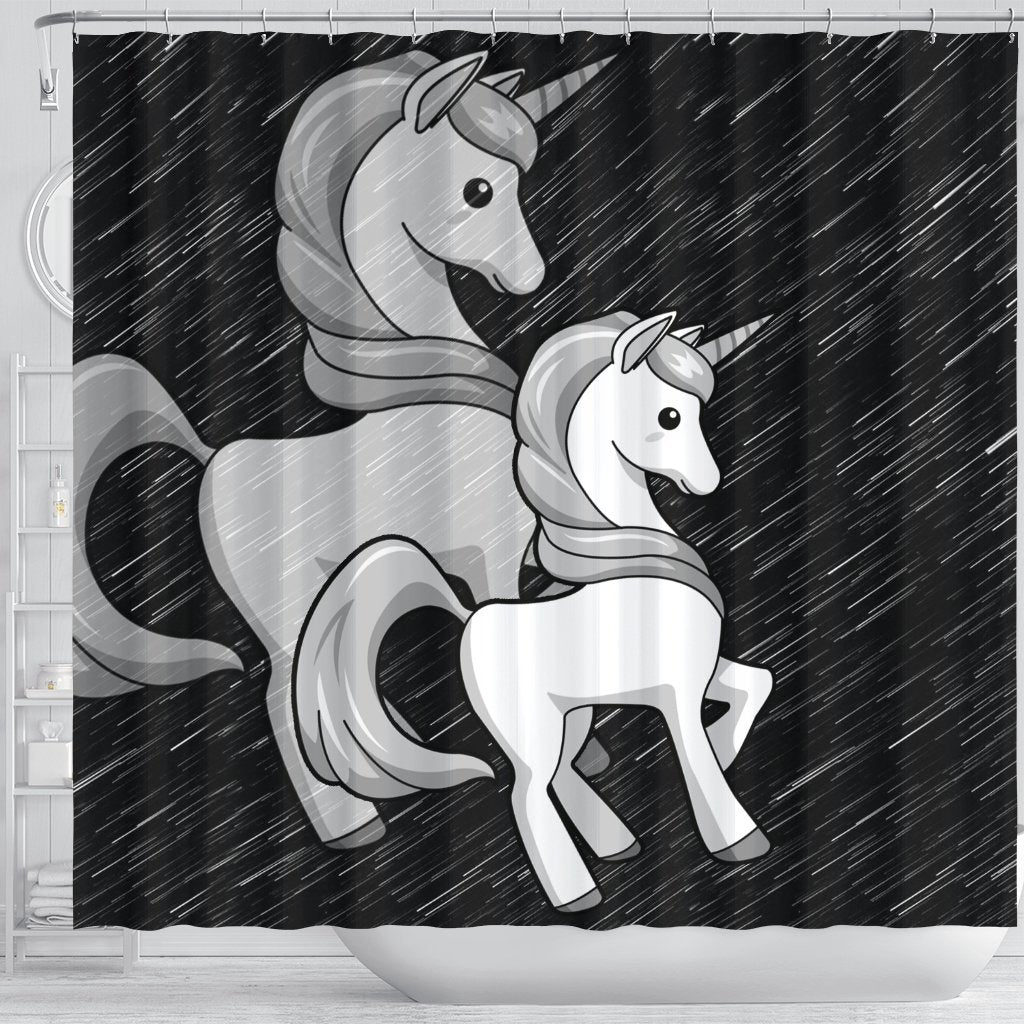 Black-White Unicorn Print Shower Curtain-Free Shipping
