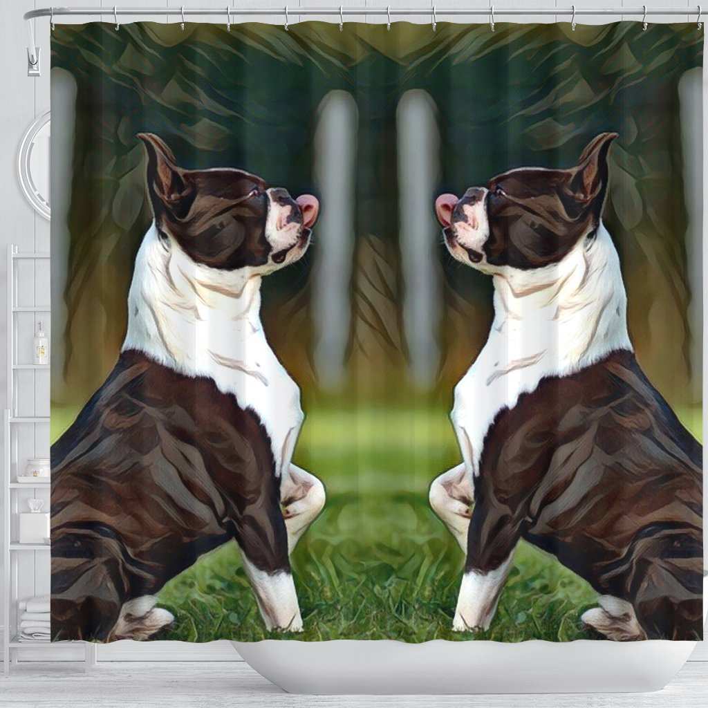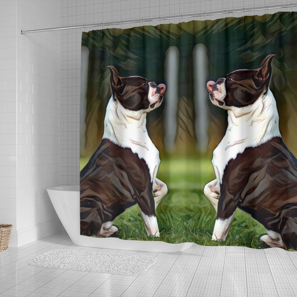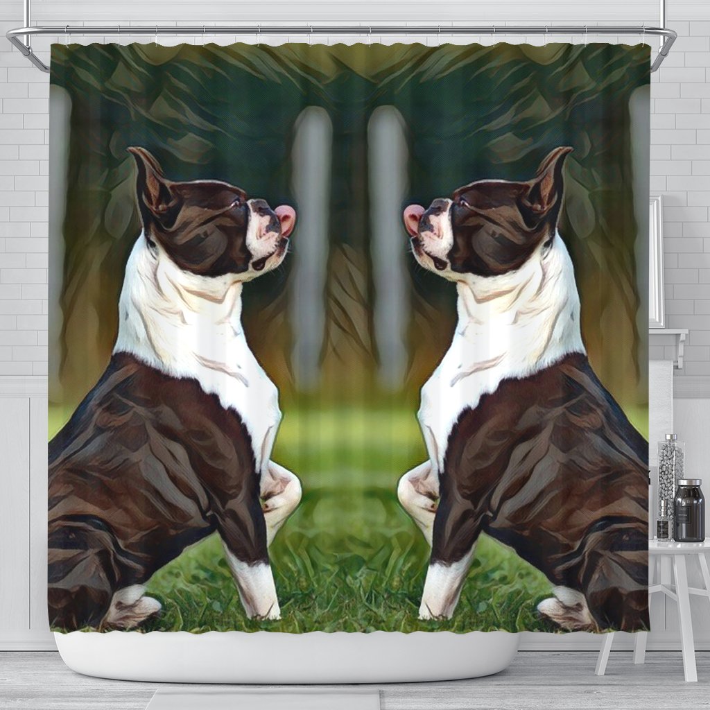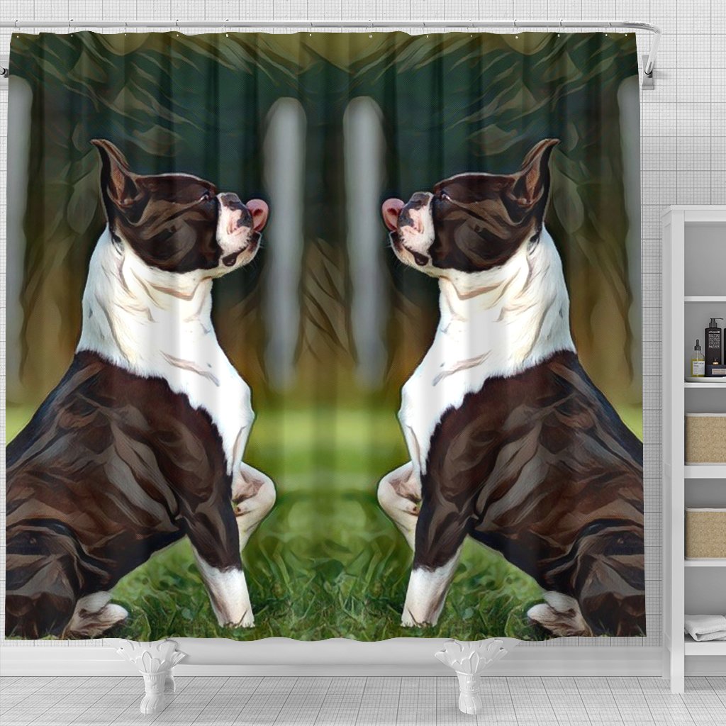 Boston Terrier Dog Paint Art Print Shower Curtains-Free Shipping