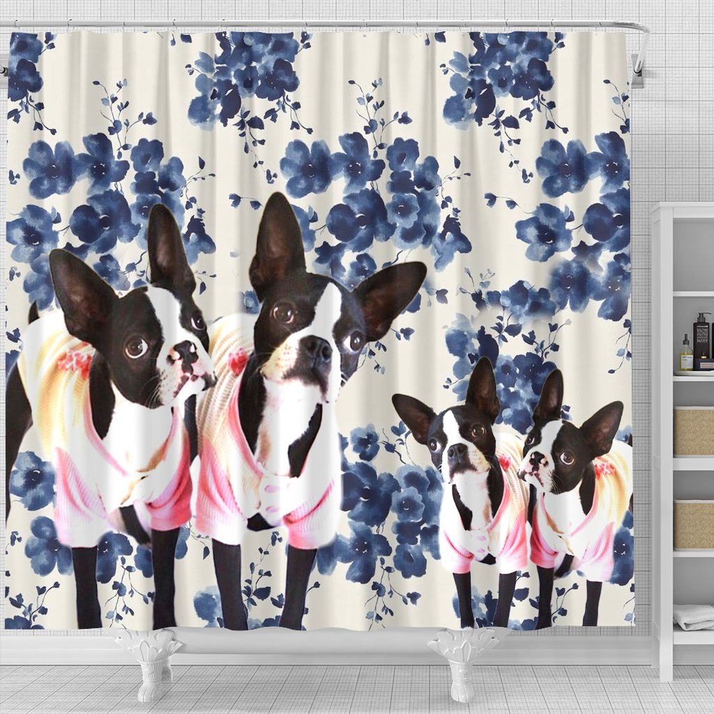 Boston Terrier Floral Print Shower Curtain-Free Shipping