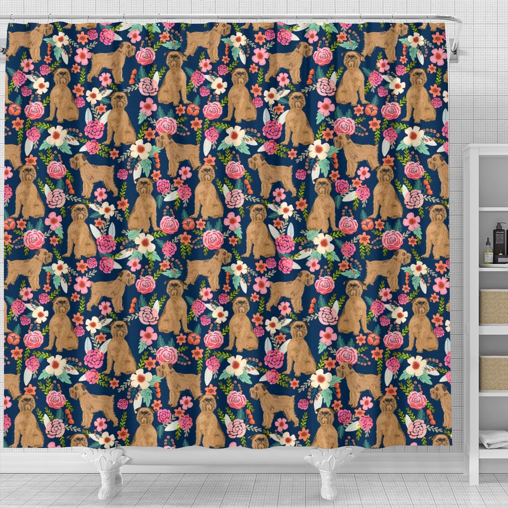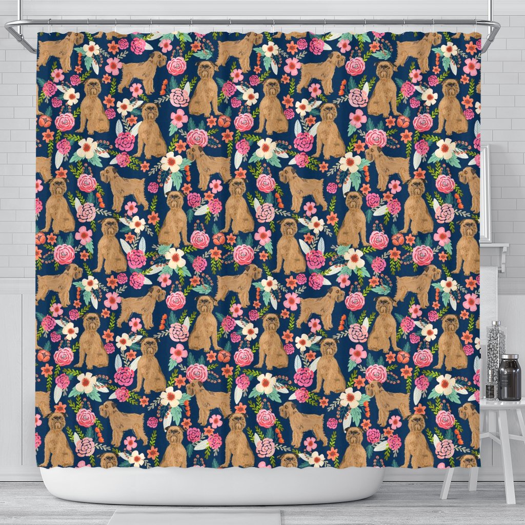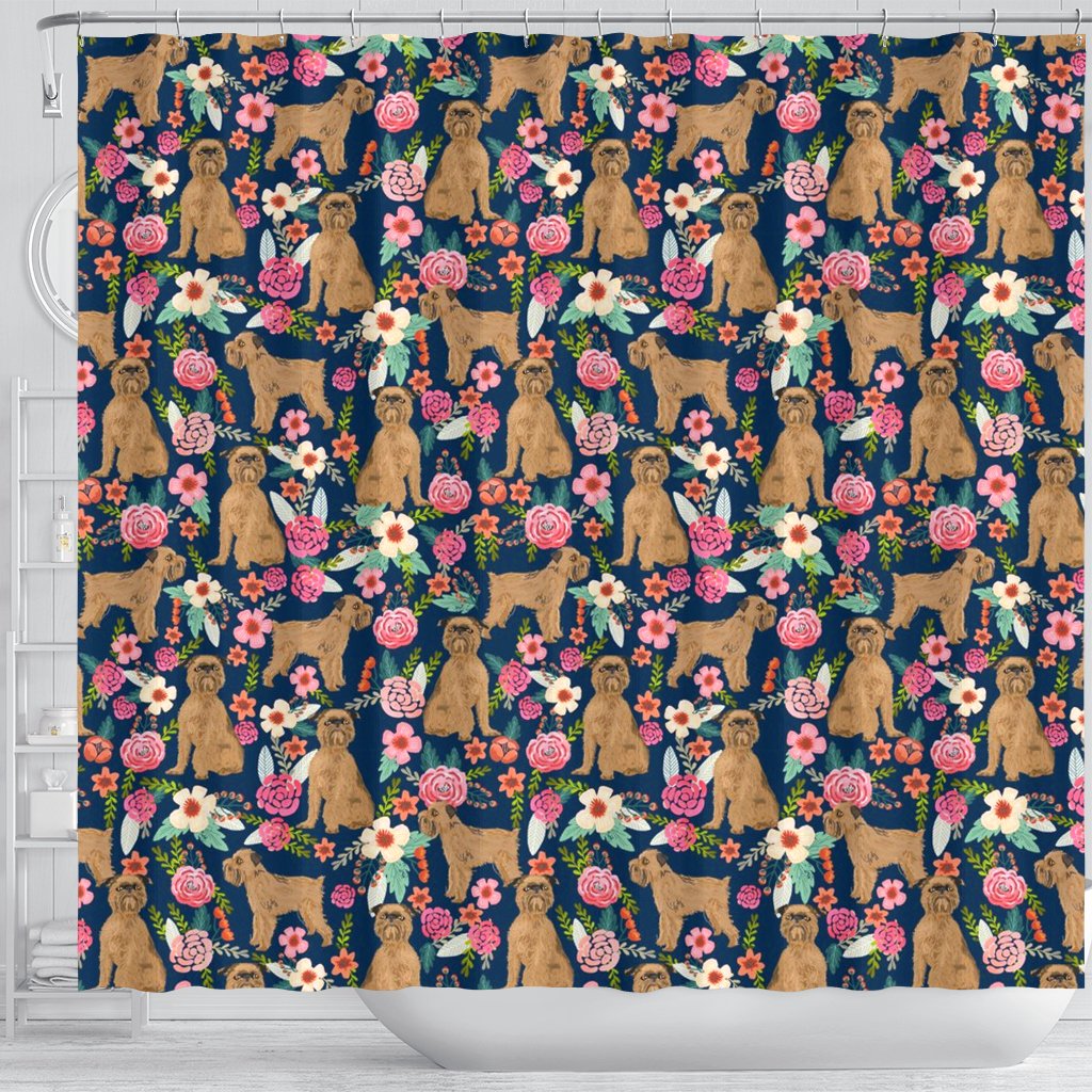 Brussels Griffon Dog Floral Print Shower Curtains-Free Shipping