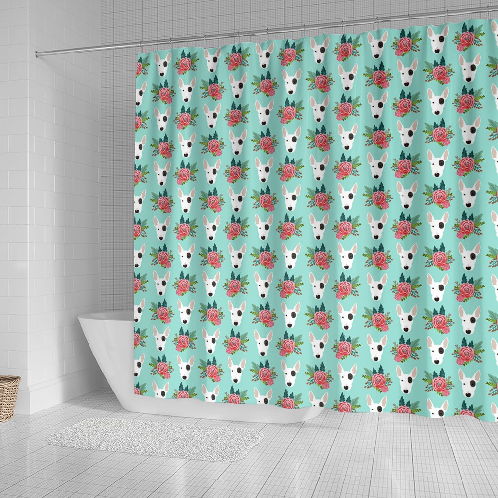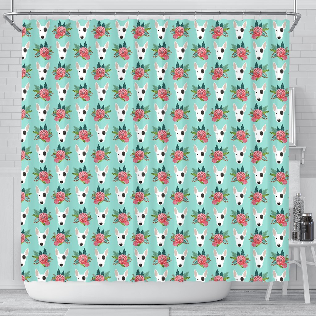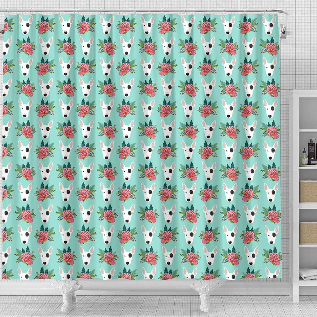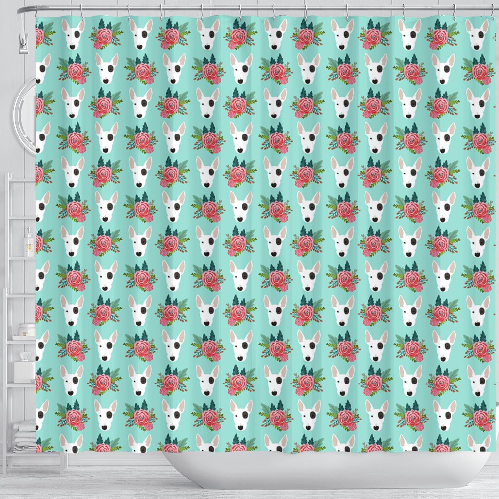 Bull Terrier Dog Floral Print Shower Curtains-Free Shipping