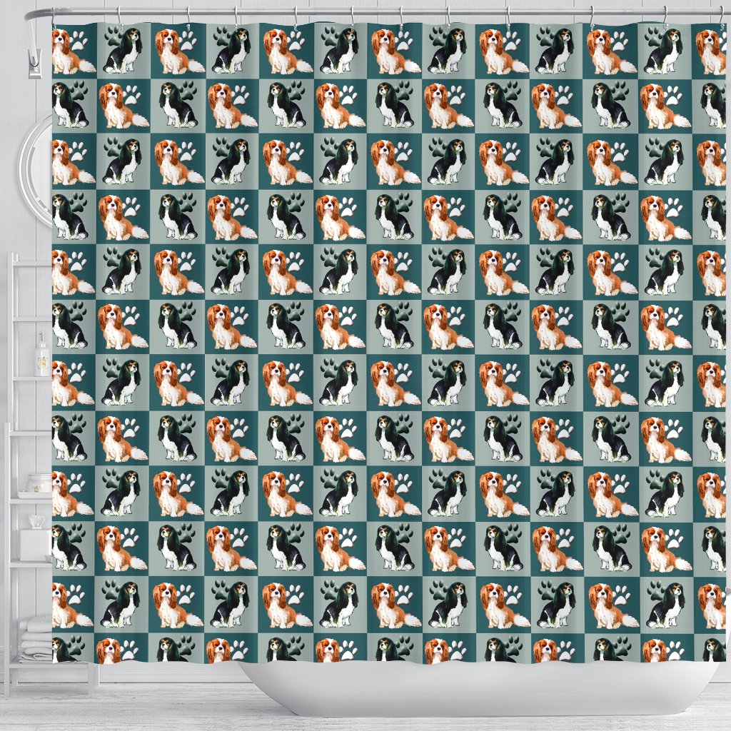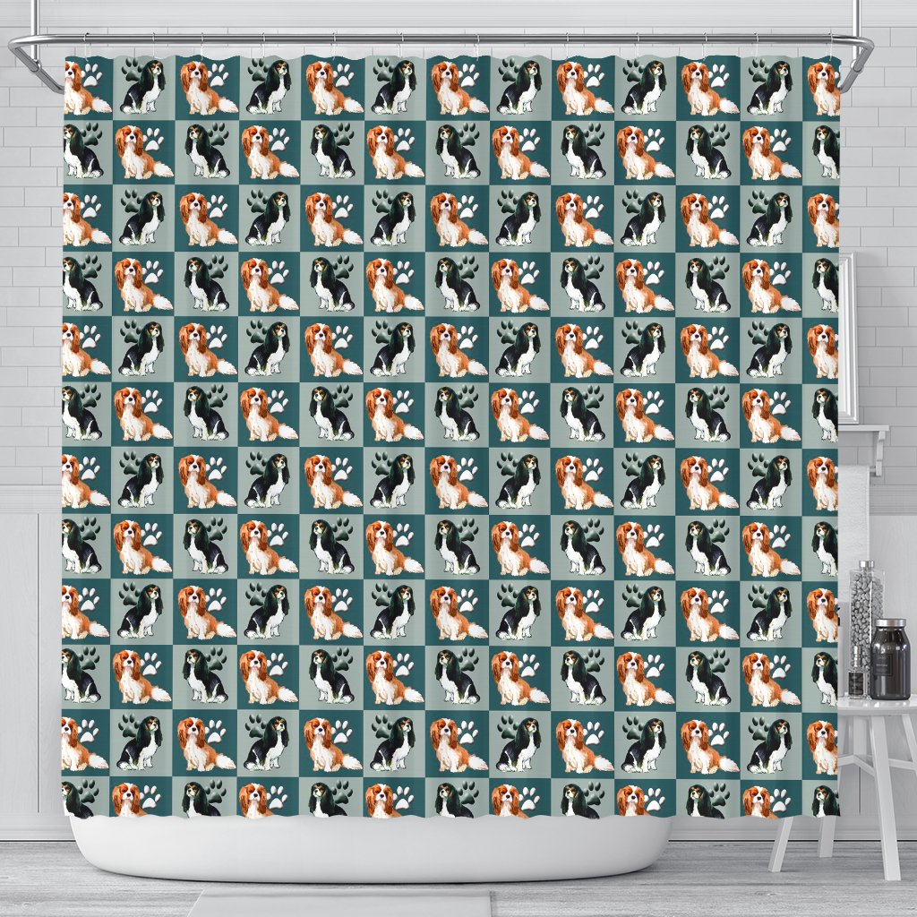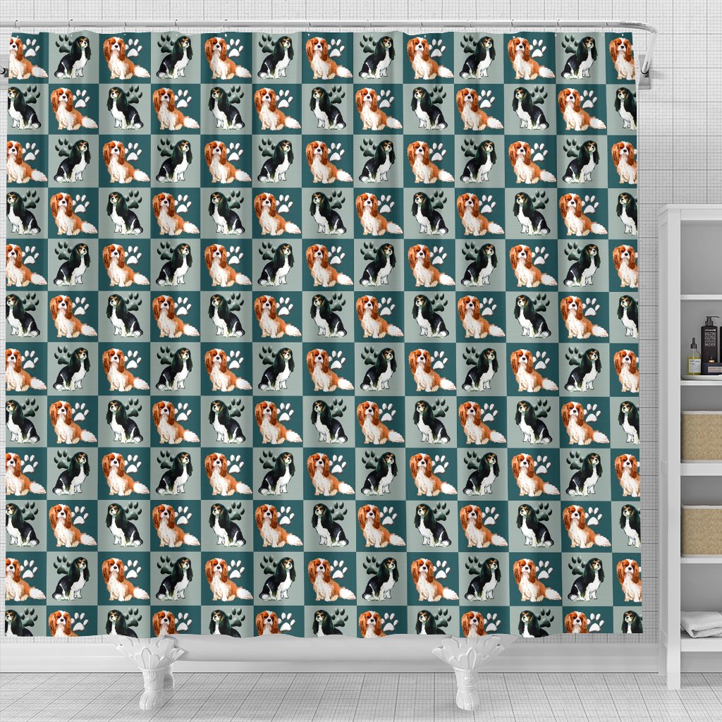 Cavalier King Charles Spaniel Dog With Paws Print Shower Curtains-Free Shipping