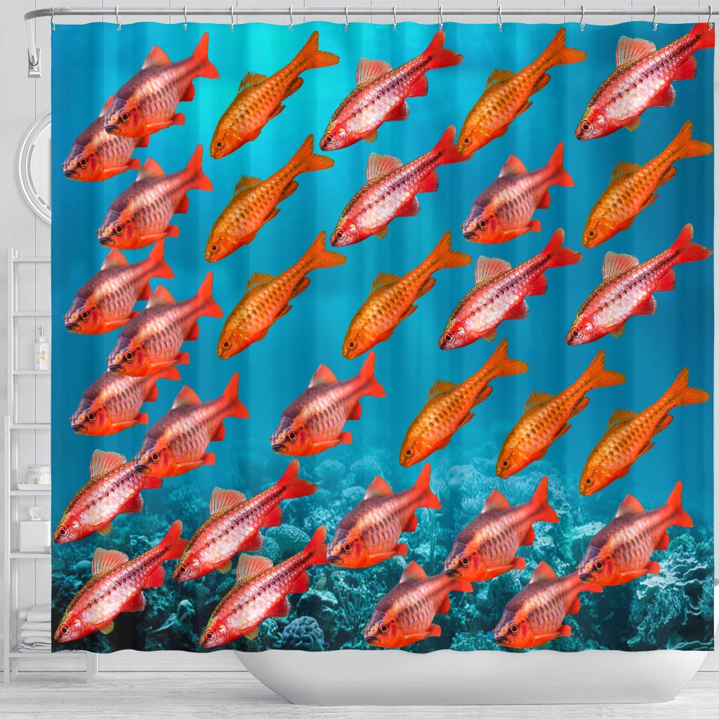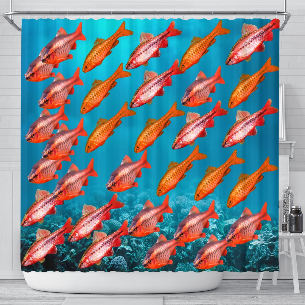 Cherry Barb Fish Print Shower Curtains-Free Shipping