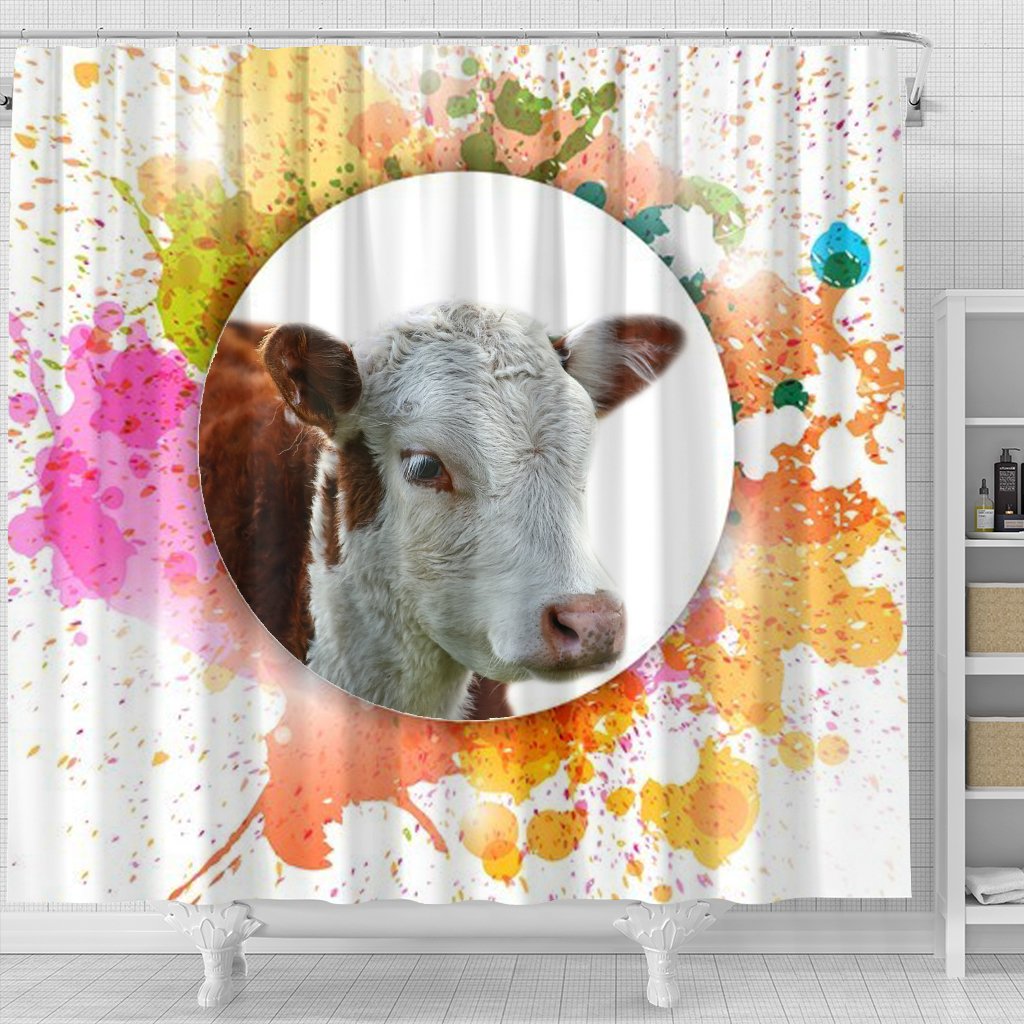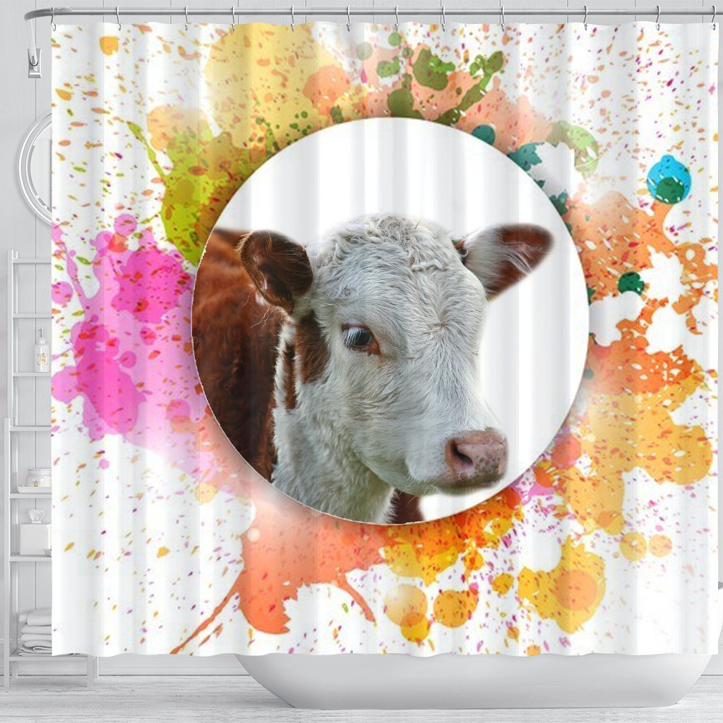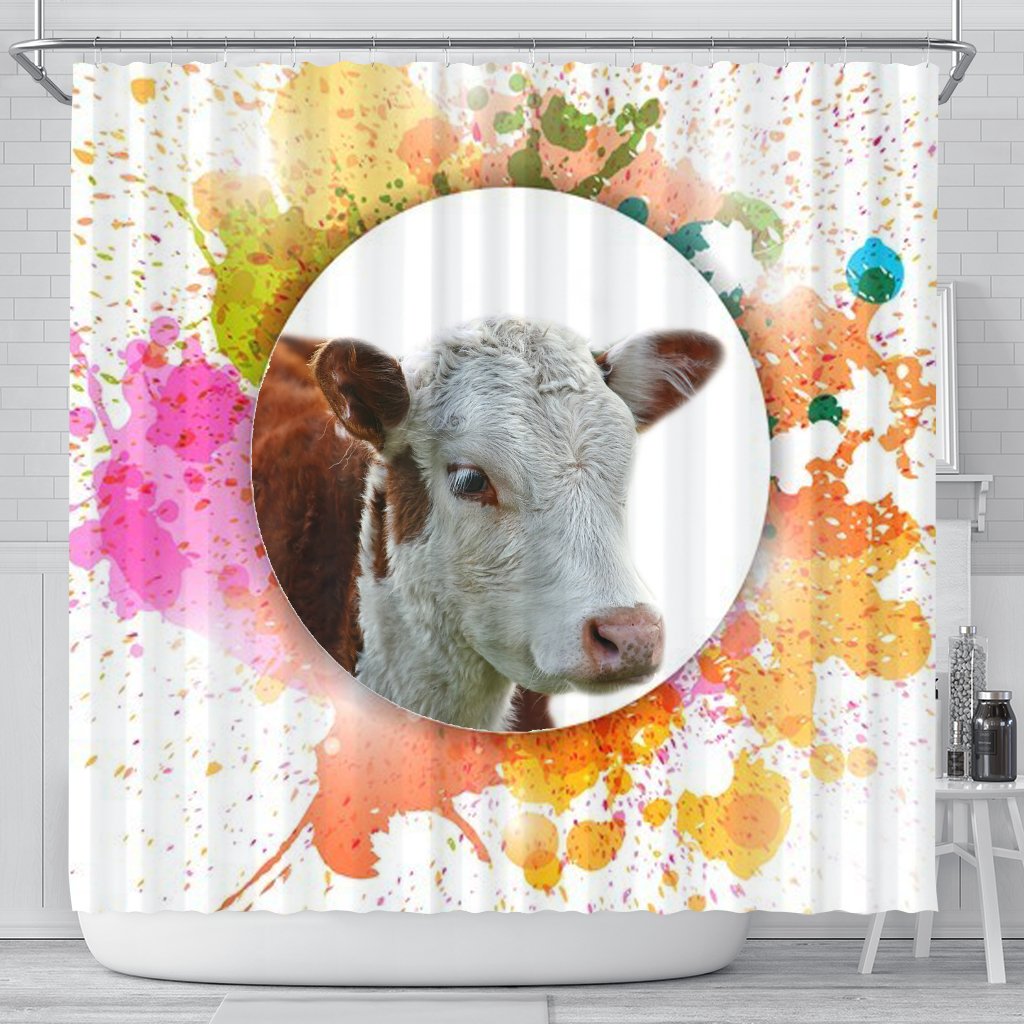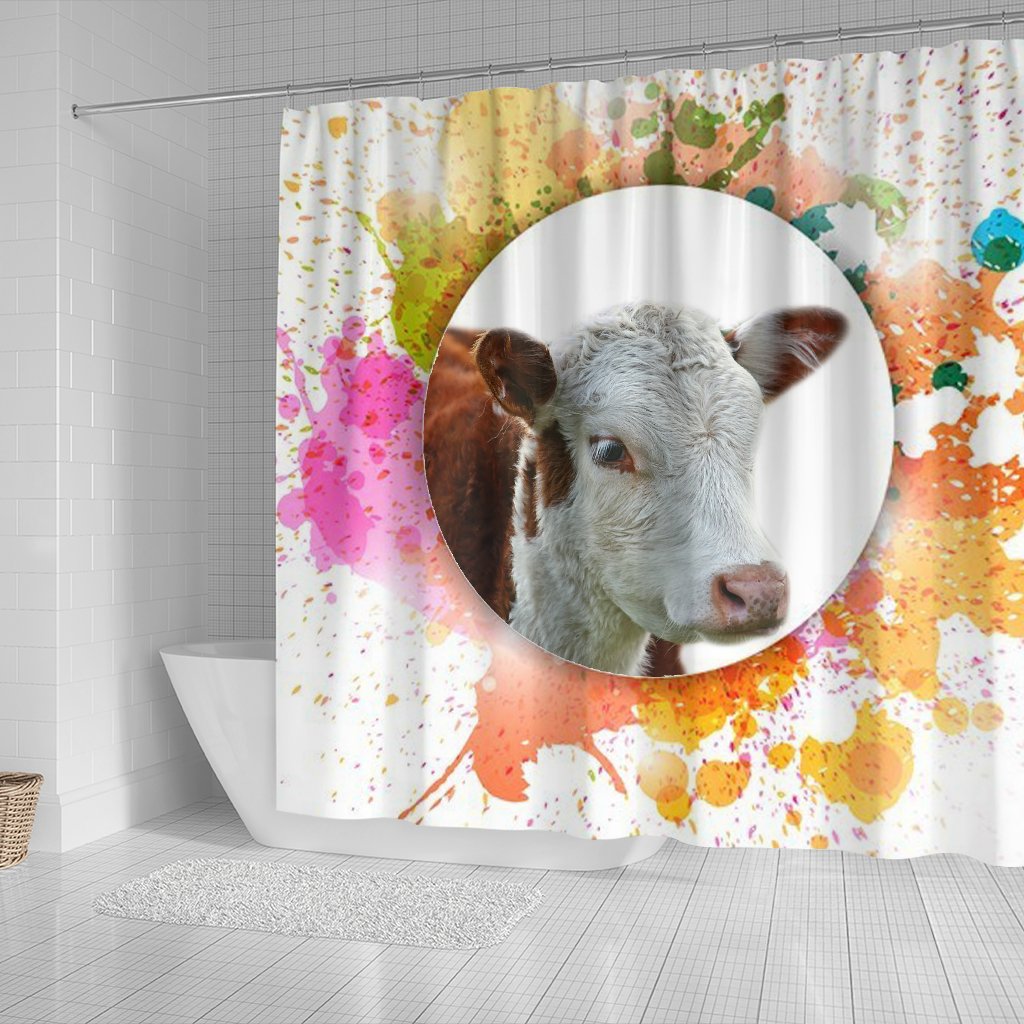 Colorful Hereford Cattle (Cow) Print Shower Curtain-Free Shipping