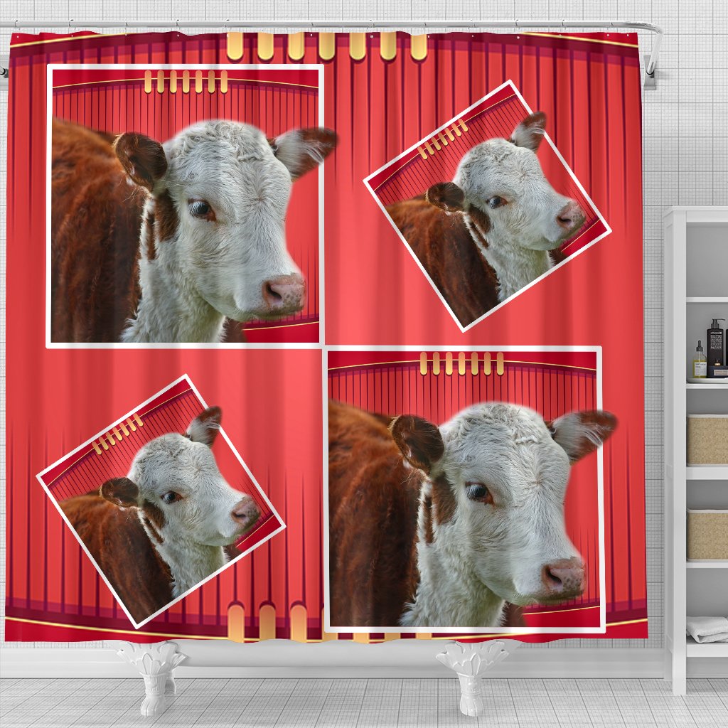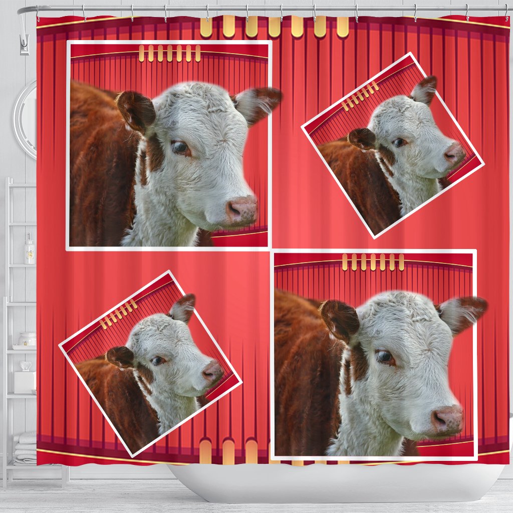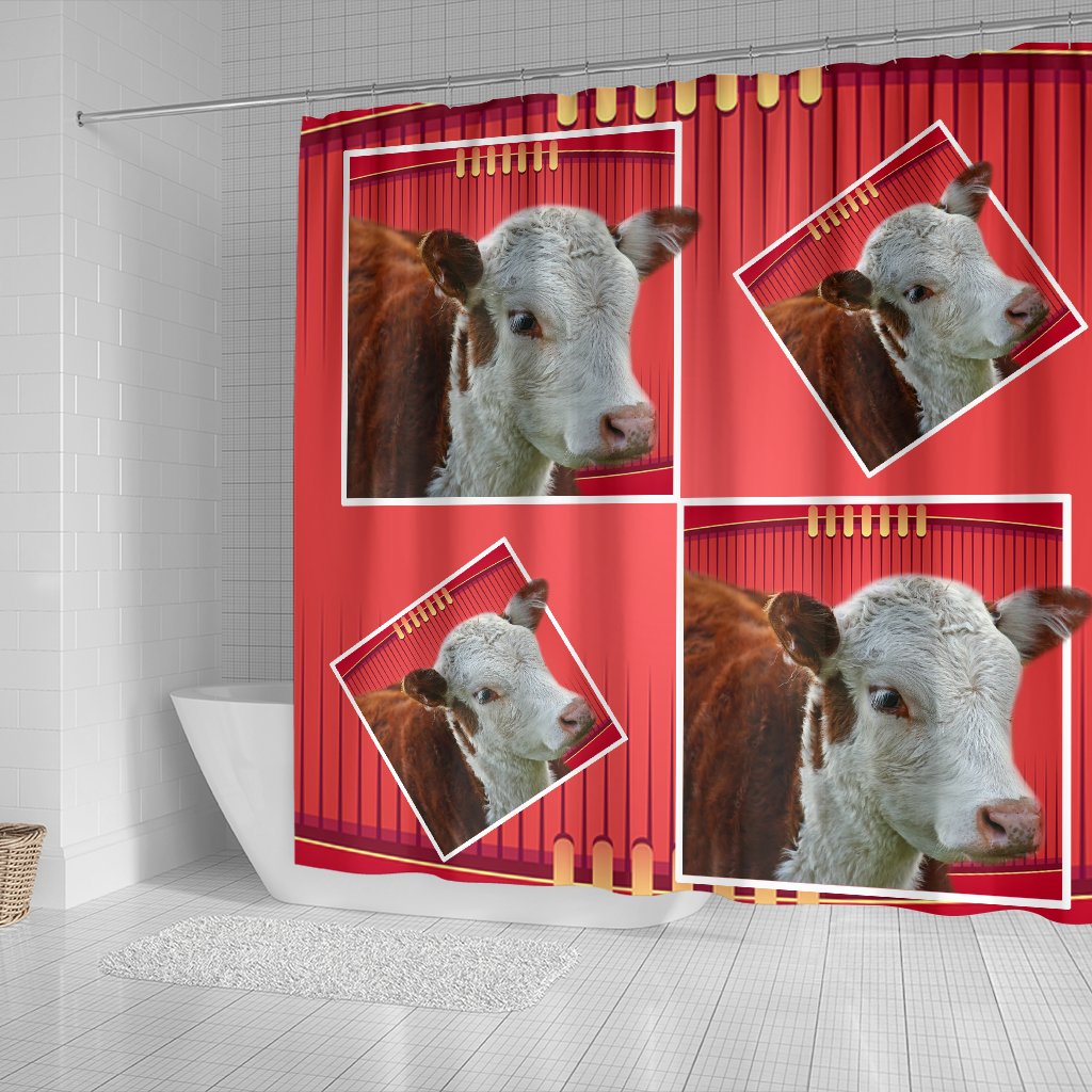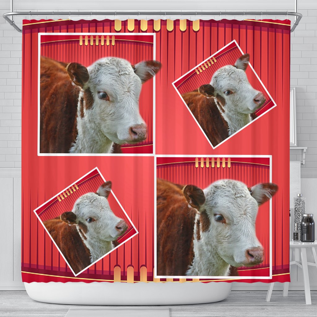 Cute Hereford Cattle (Cow) Print Shower Curtain-Free Shipping