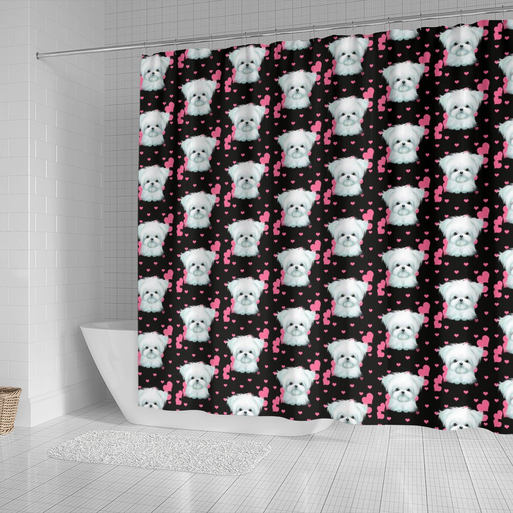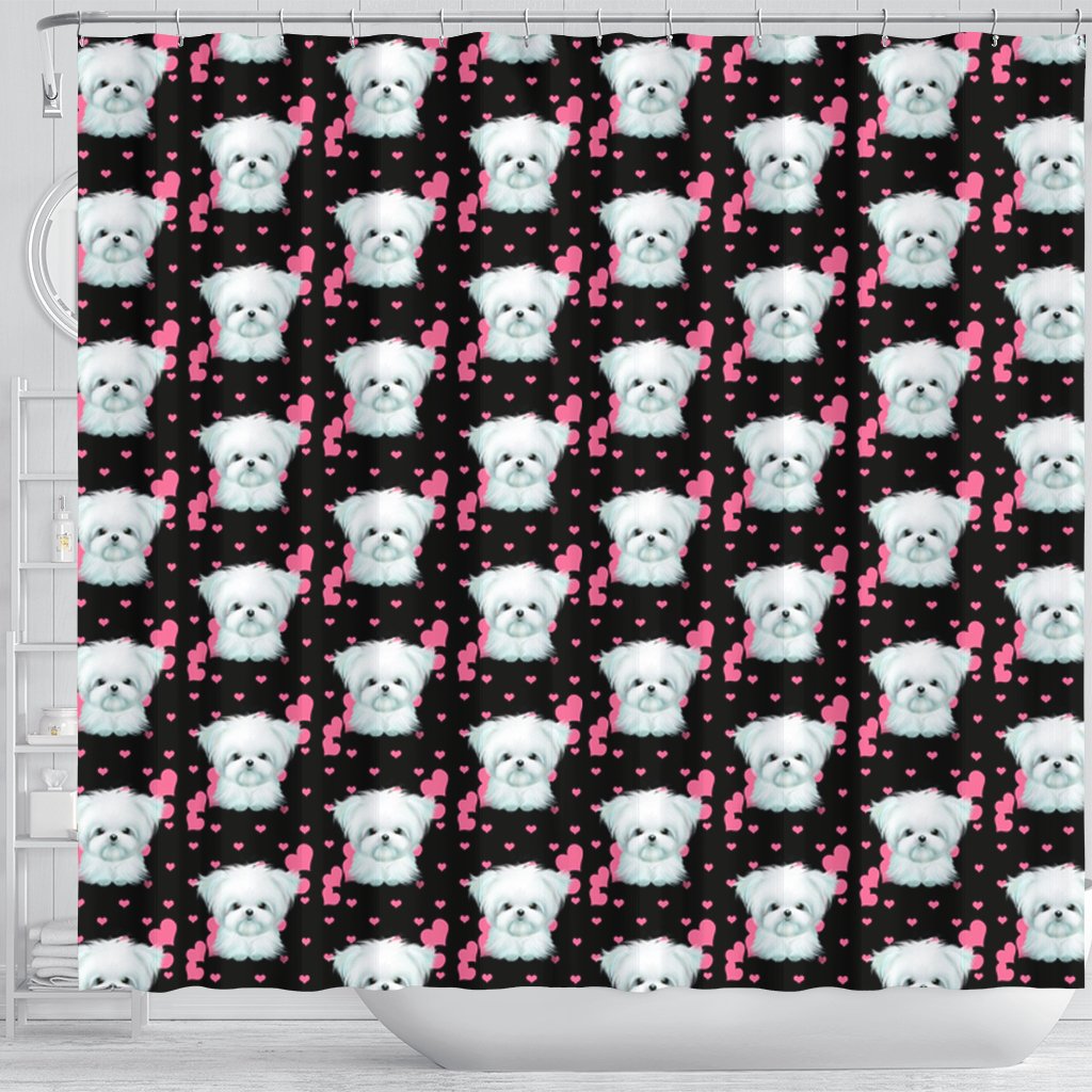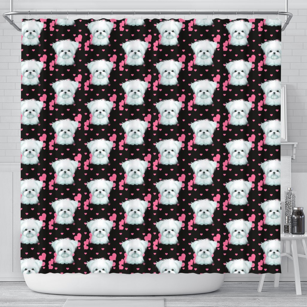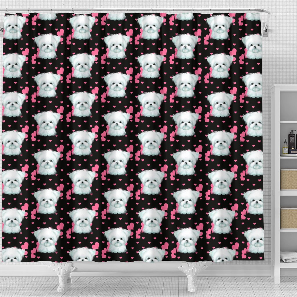 Cute Maltese Dog With Hearts Print Shower Curtains-Free Shipping