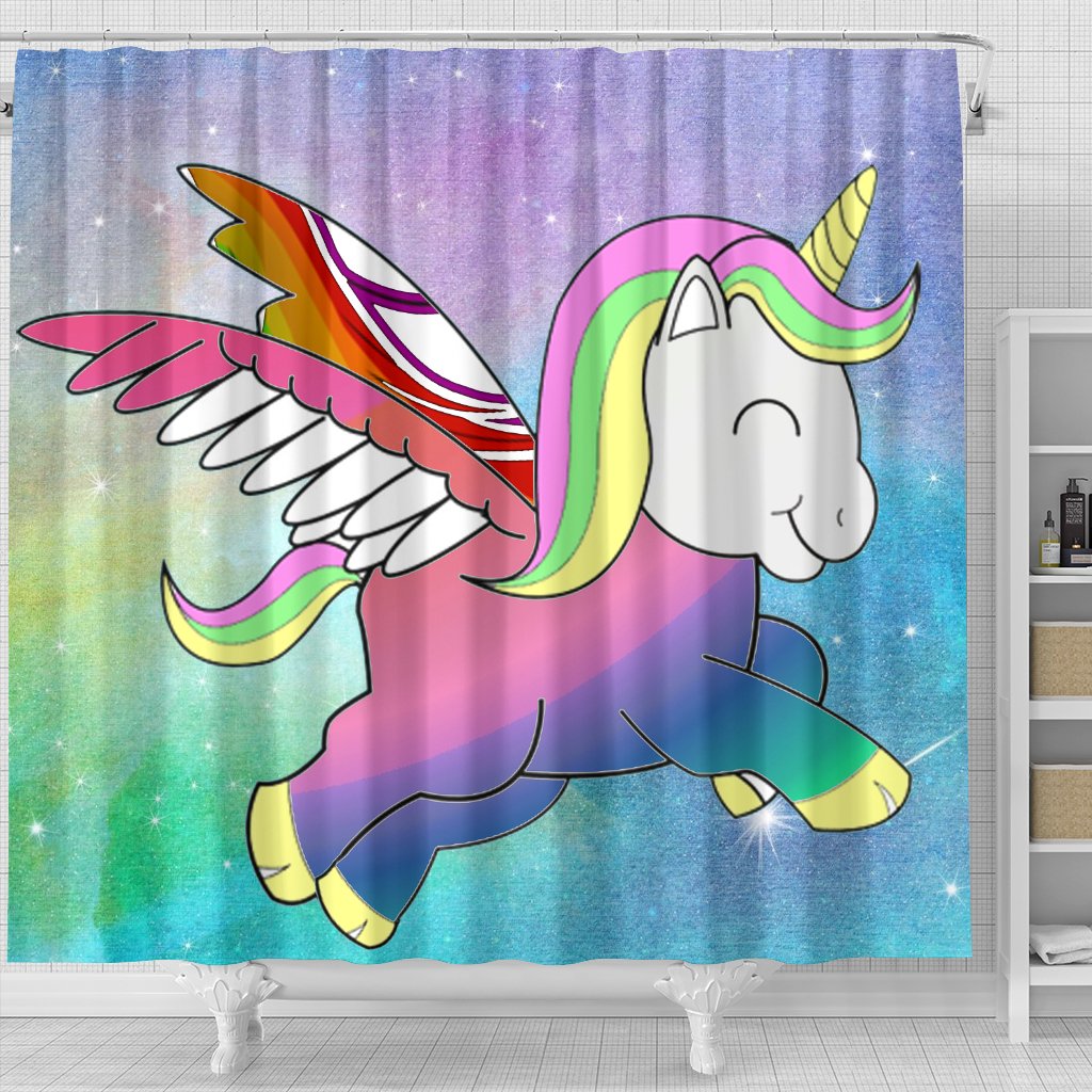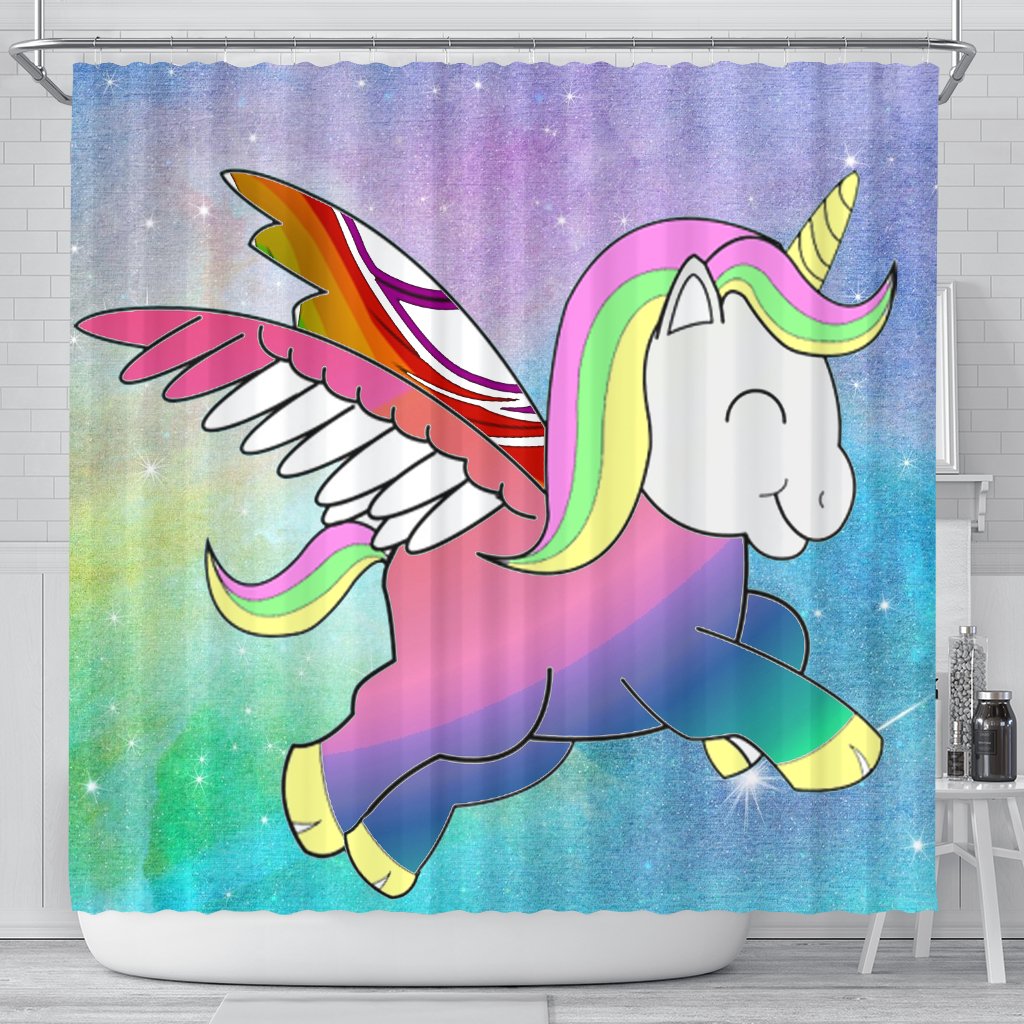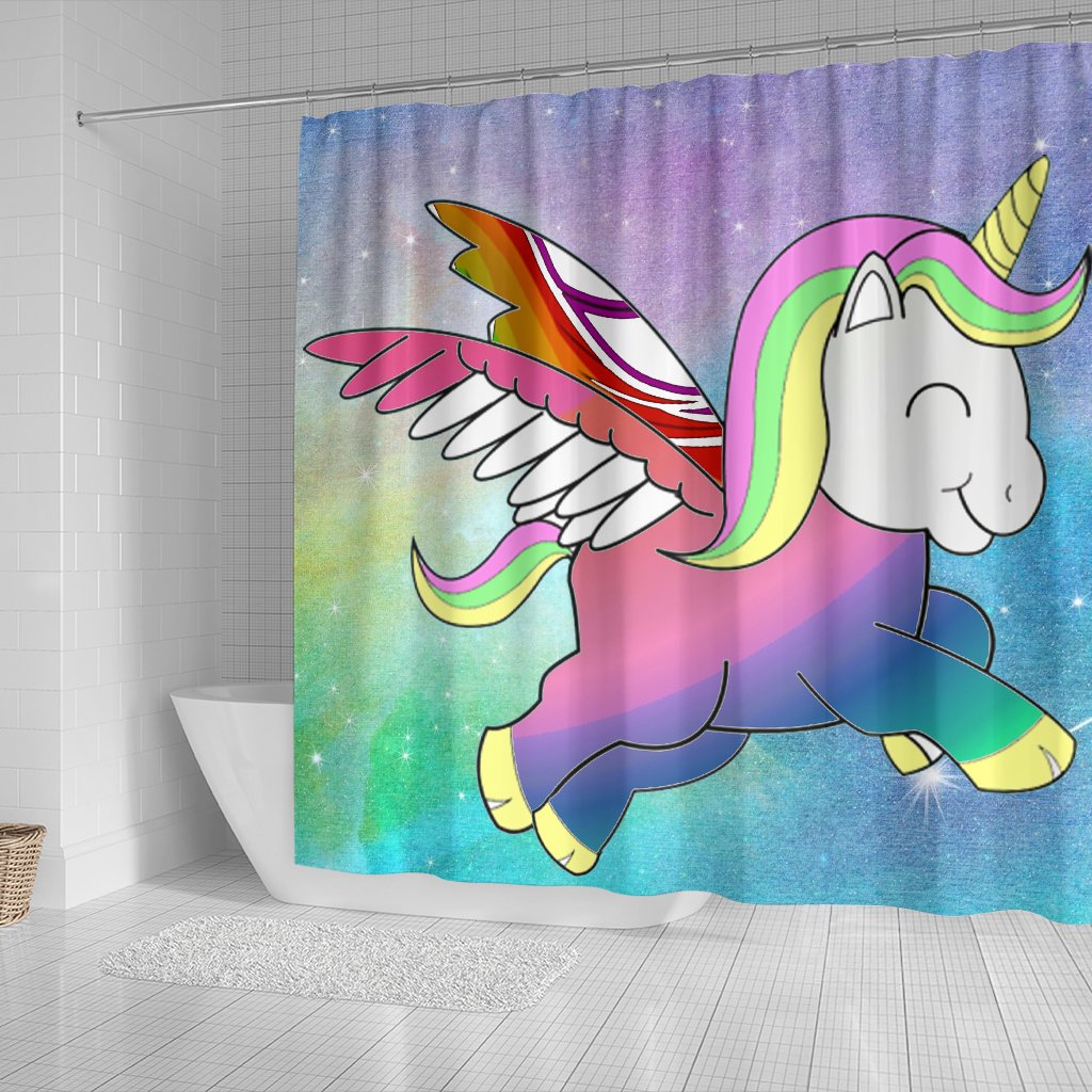 Cute Smiling Unicorn Print Shower Curtain-Free Shipping
