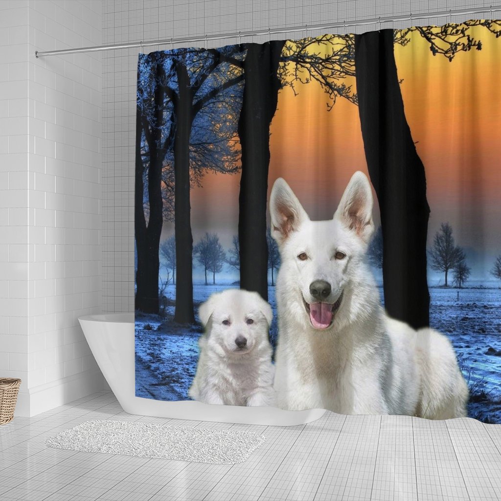 Cute White Shepherd Print Shower Curtains-Free Shipping
