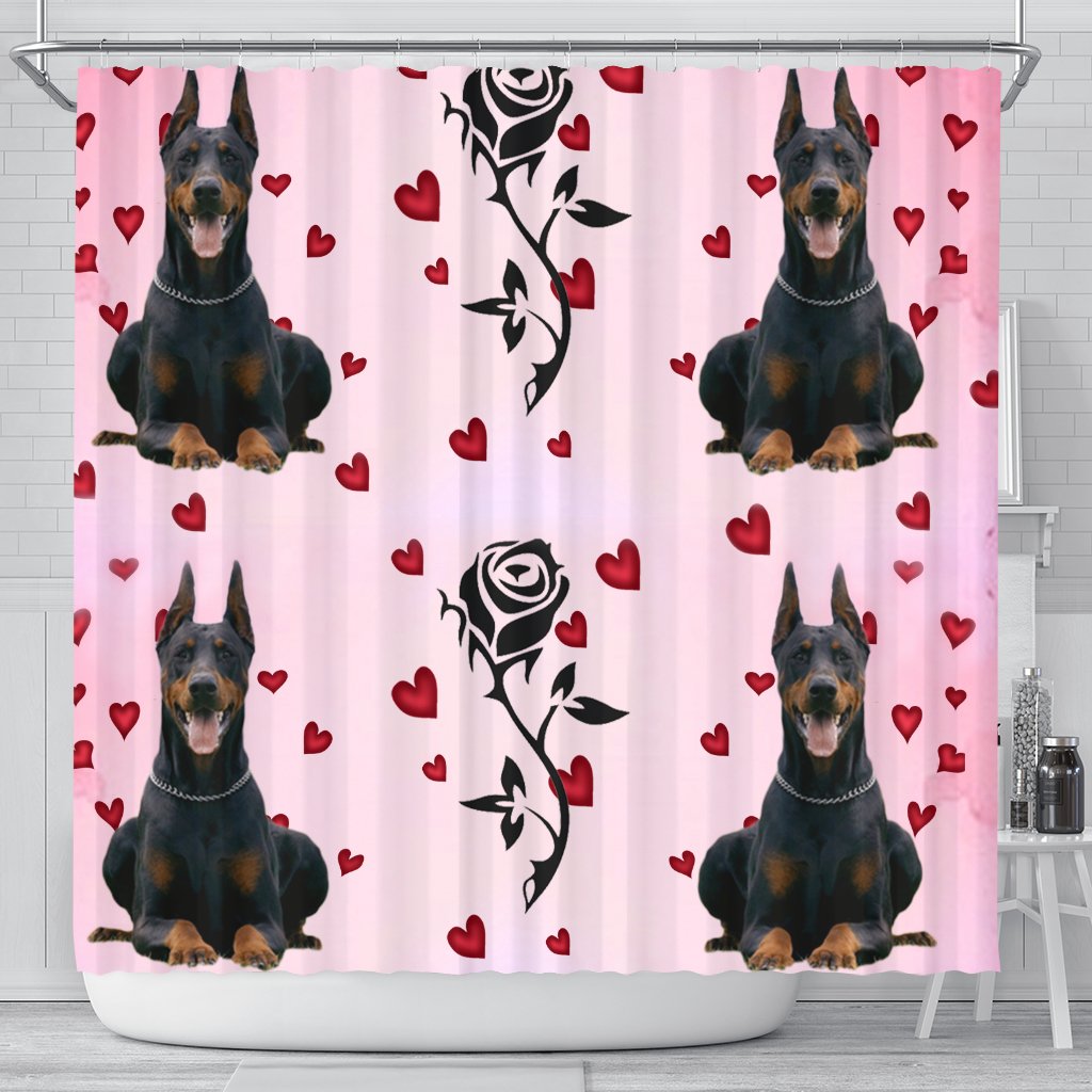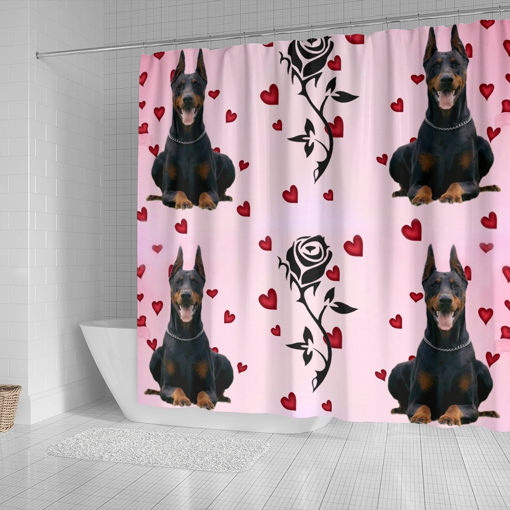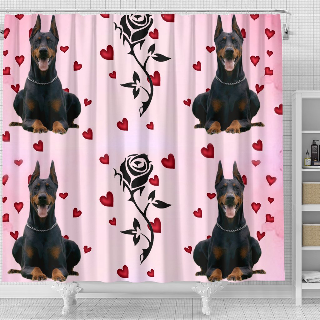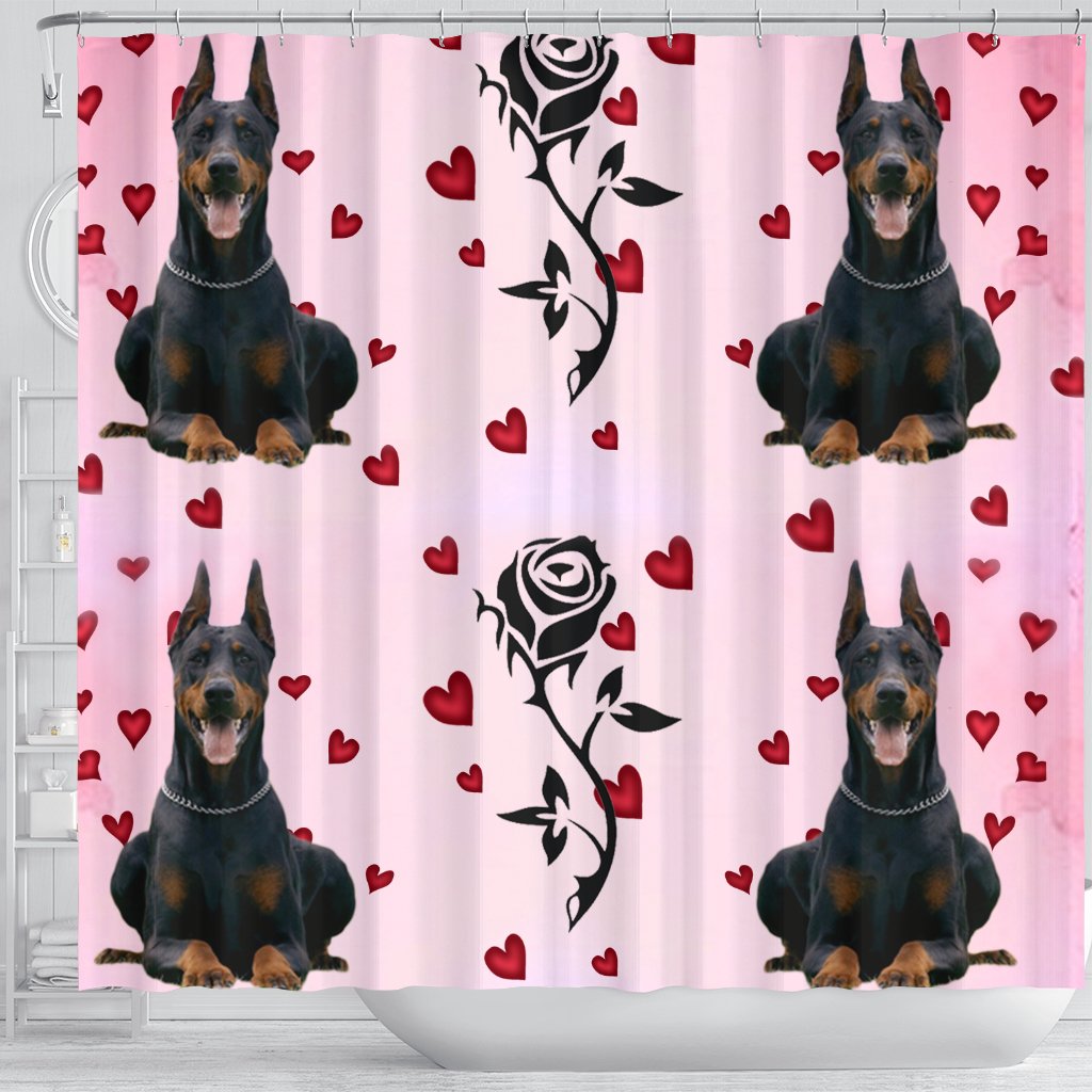 Doberman Pinscher With Rose Print Shower Curtain-Free Shipping