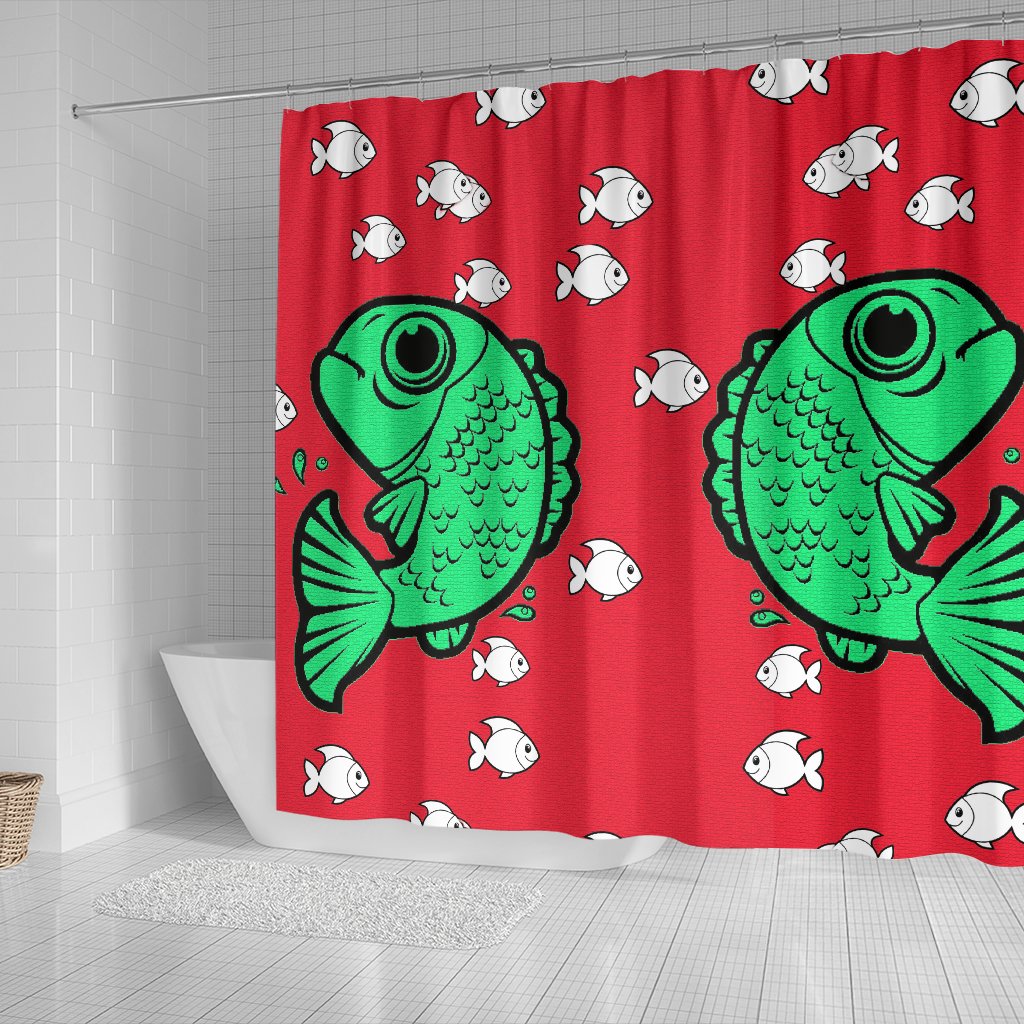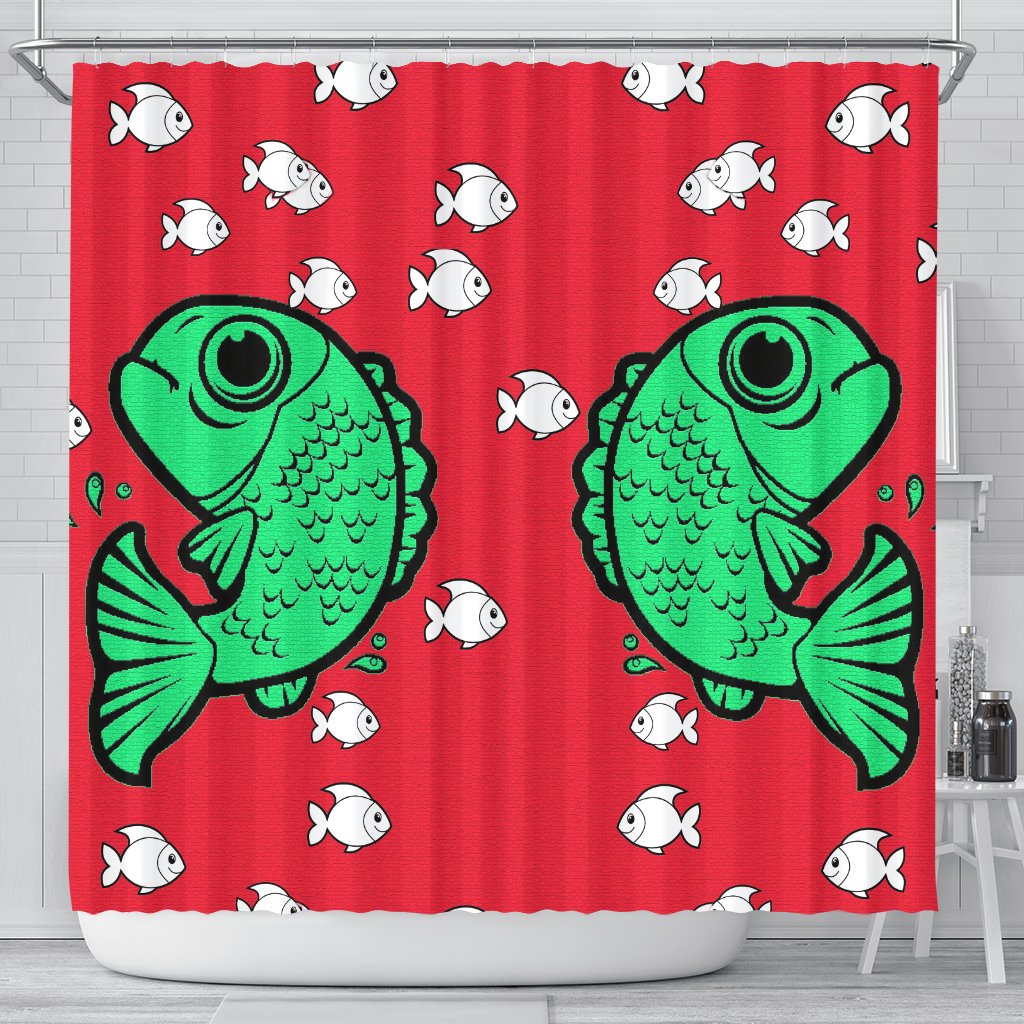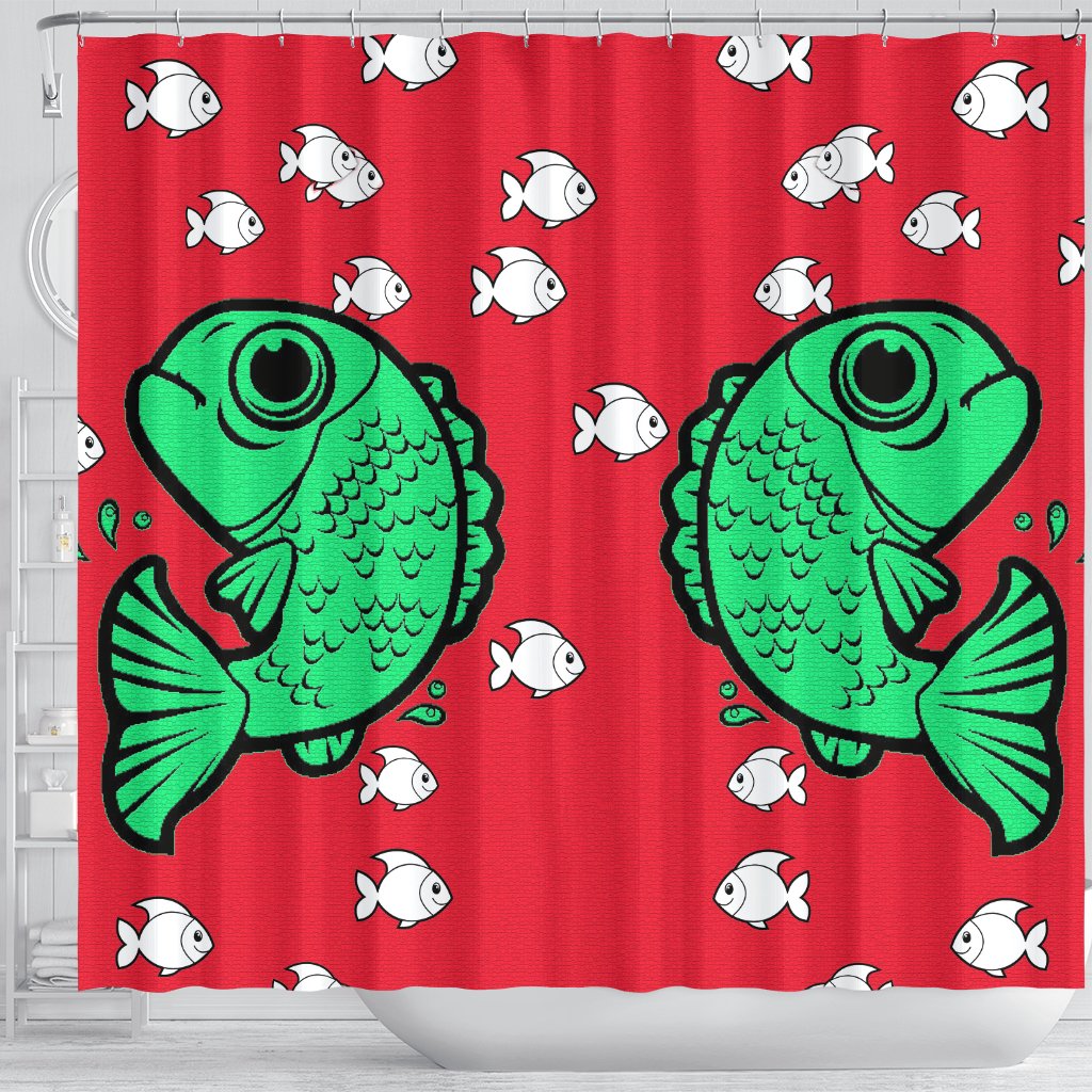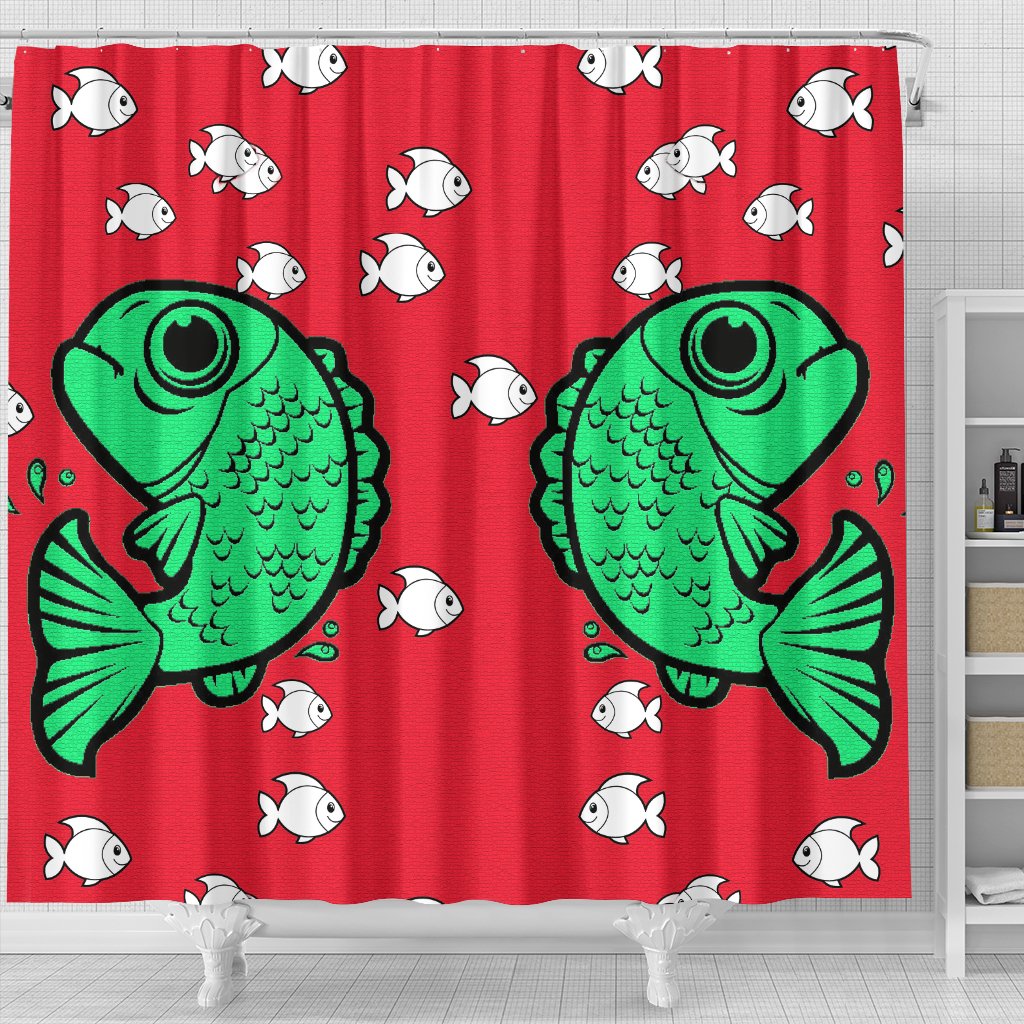 Fish Print On Red Shower Curtain-Free Shipping
