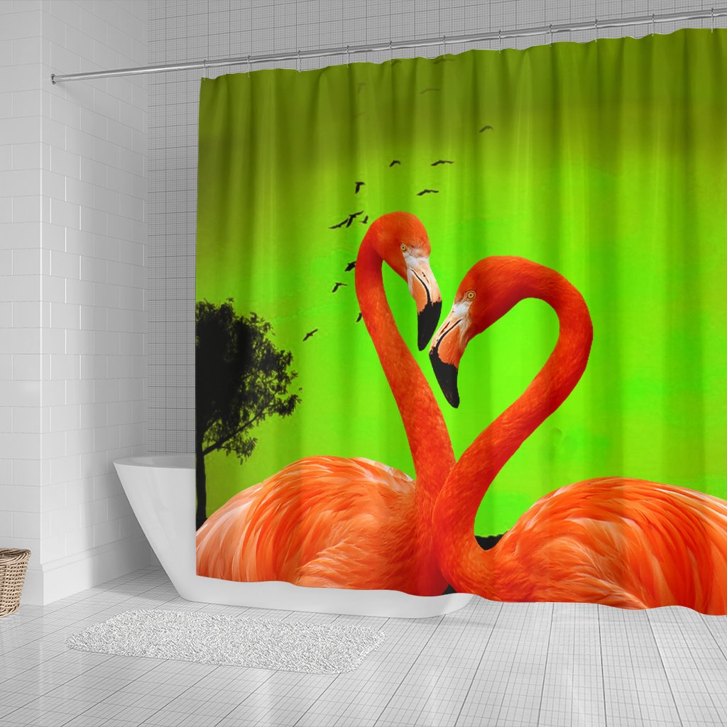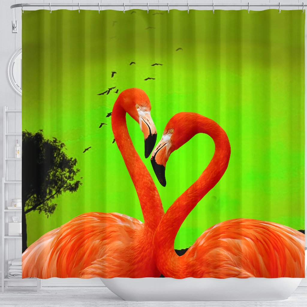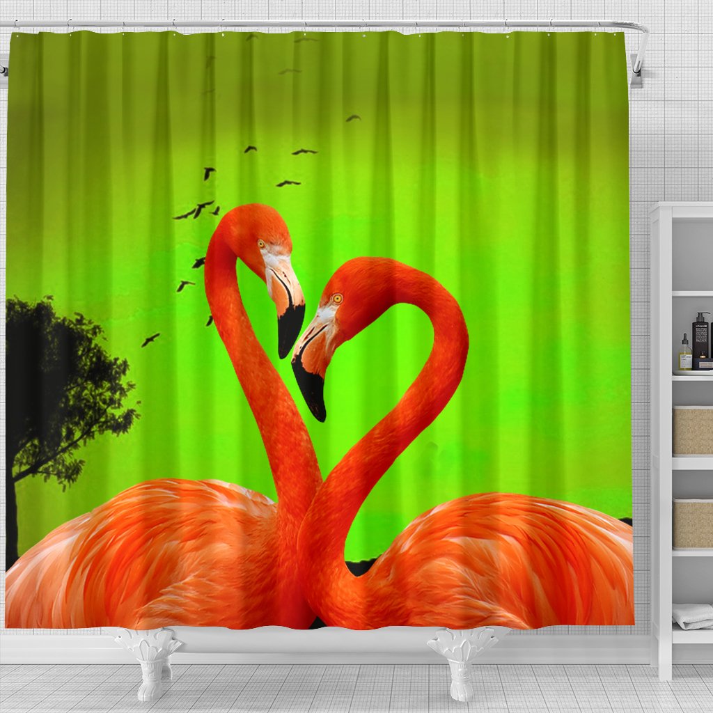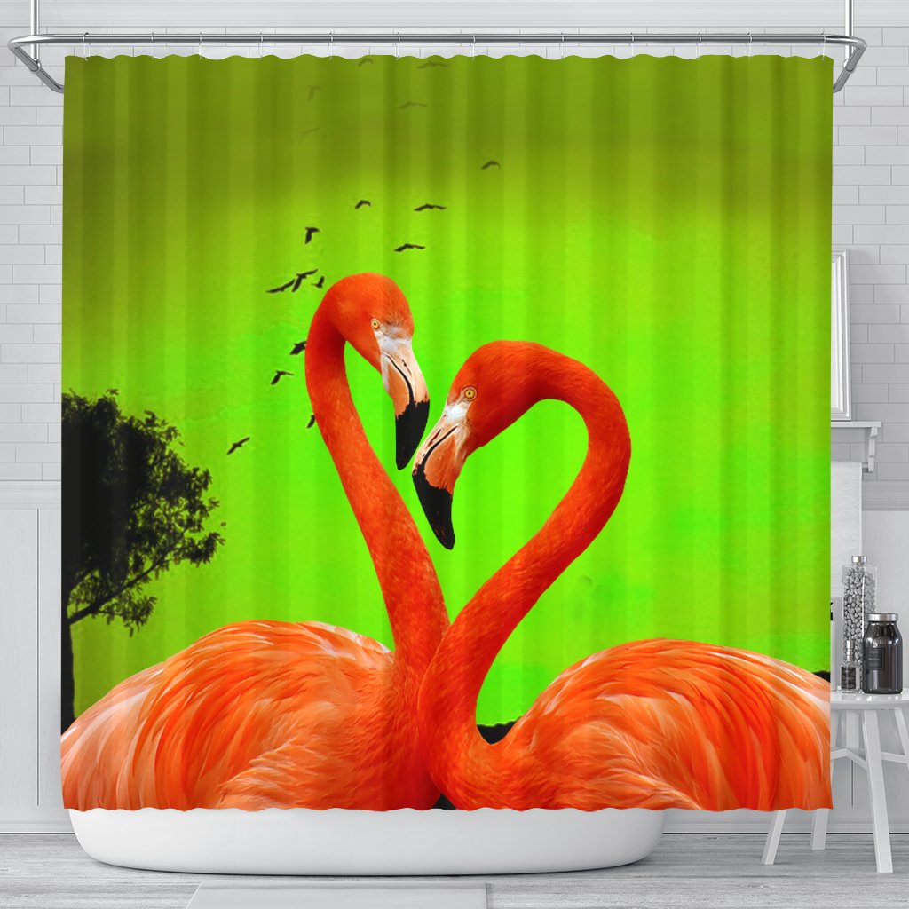 Flamingo Bird Heart Shape Print Shower Curtain-Free Shipping