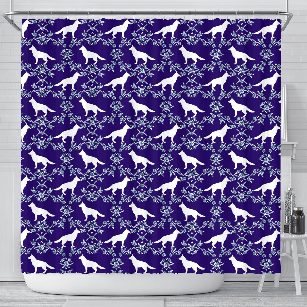 German Shepherd Dog Floral Print Shower Curtains-Free Shipping
