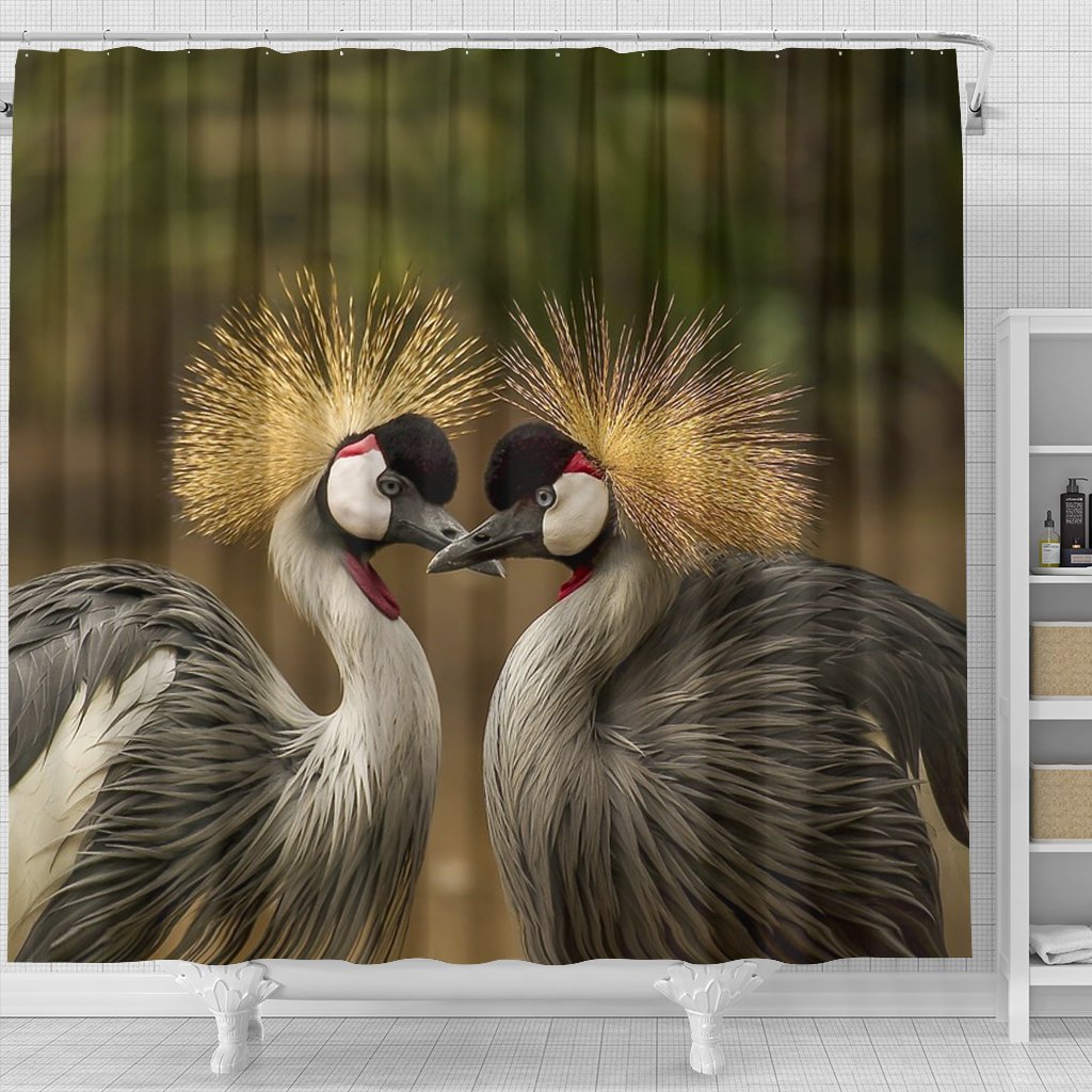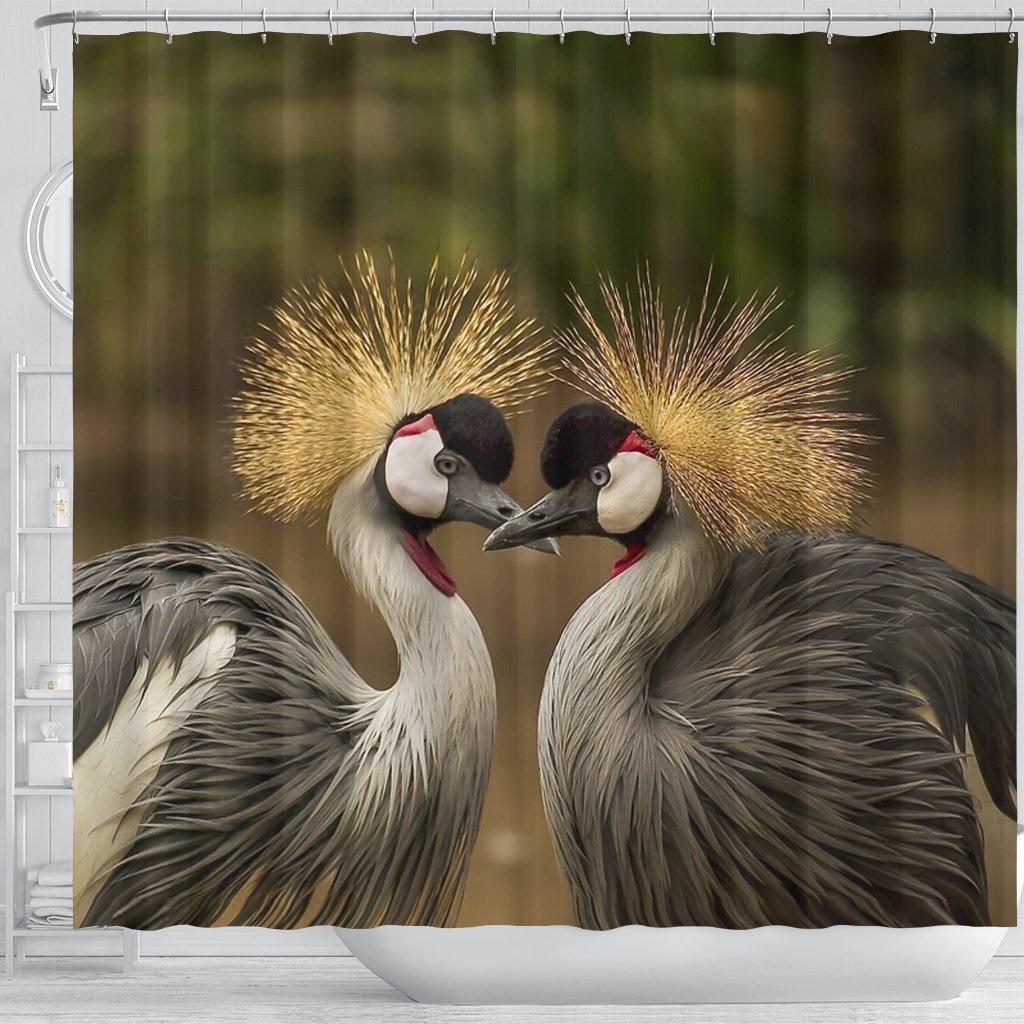 Grey Crowned Crane Bird Print Shower Curtains-Free Shipping