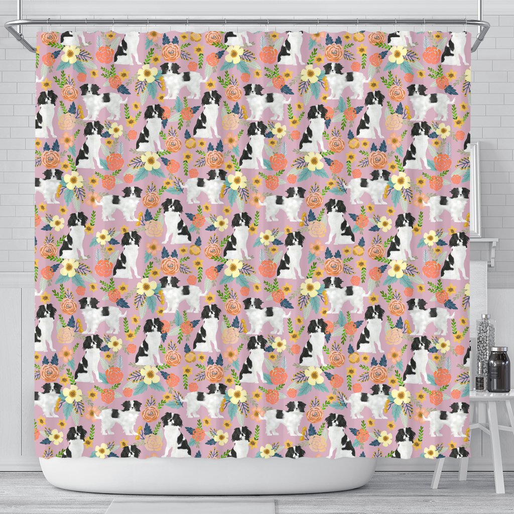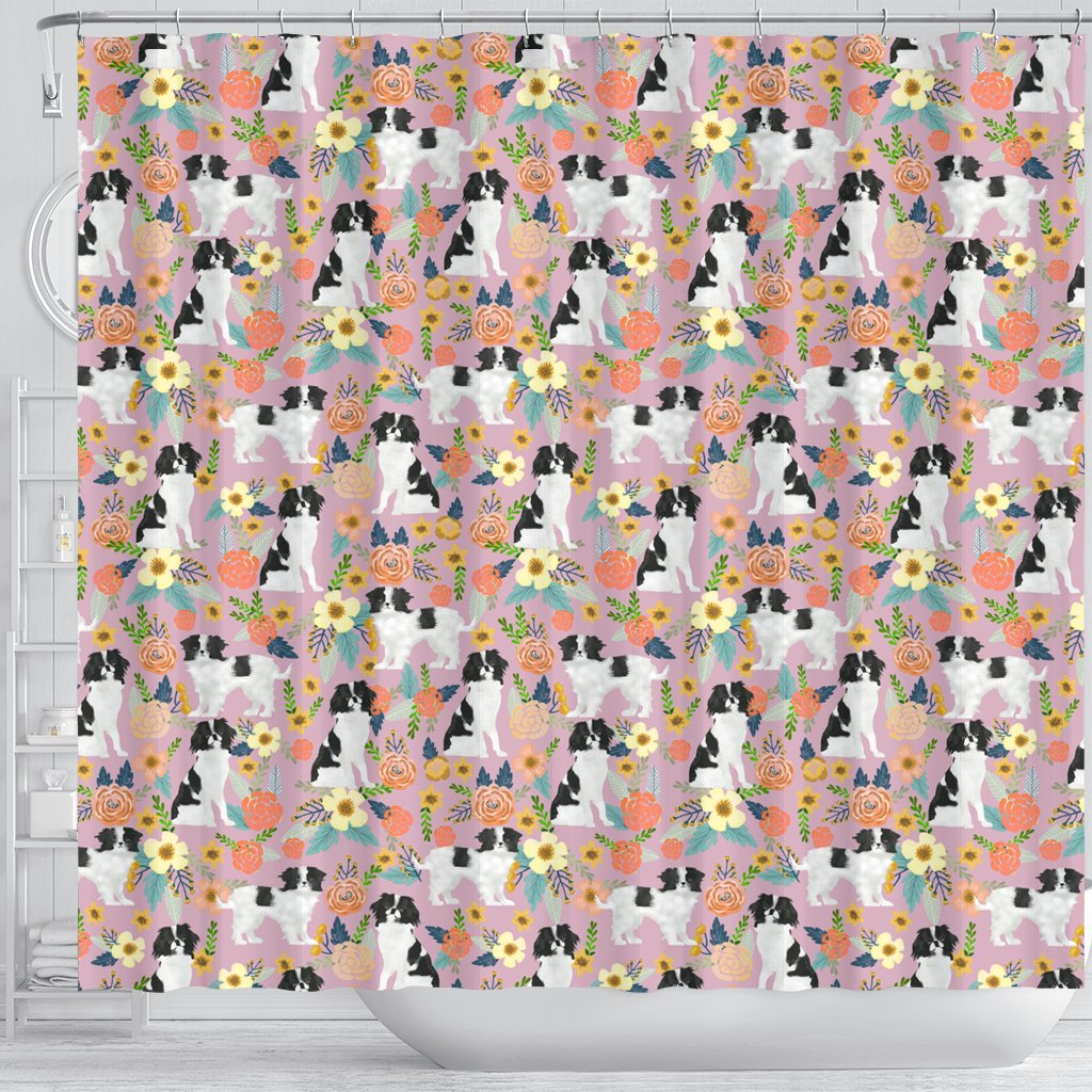 Japanese Chin Dog Floral Print Shower Curtains-Free Shipping