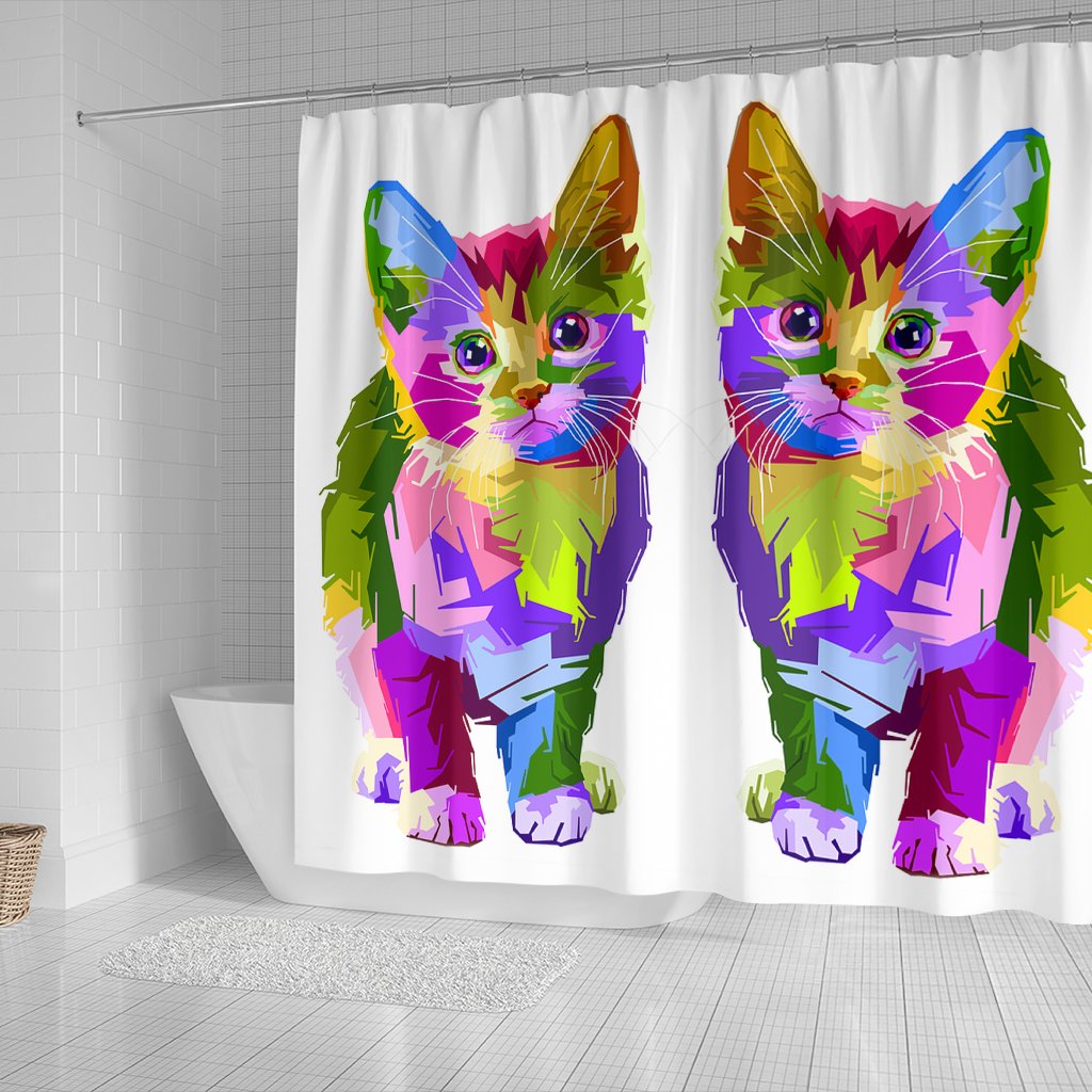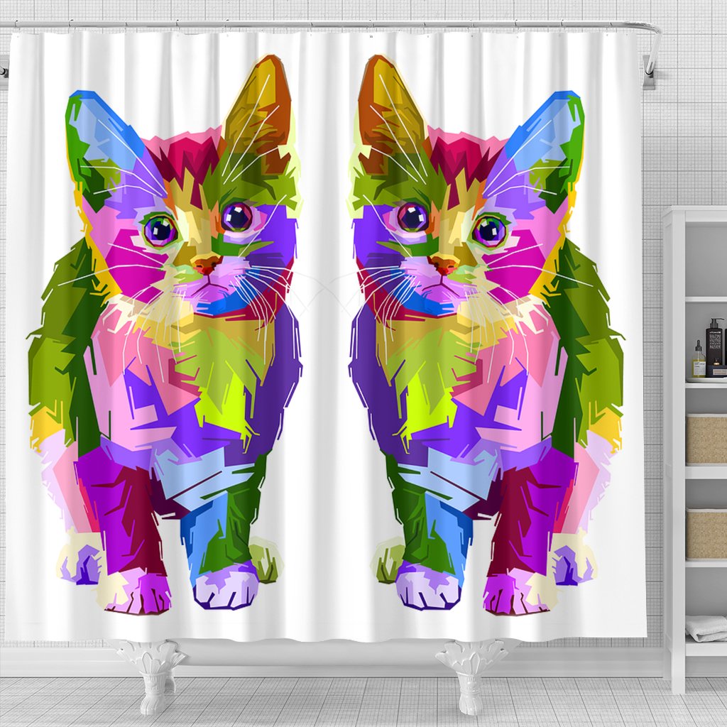 Lovely Cat Colorful Art Print Shower Curtains-Free Shipping
