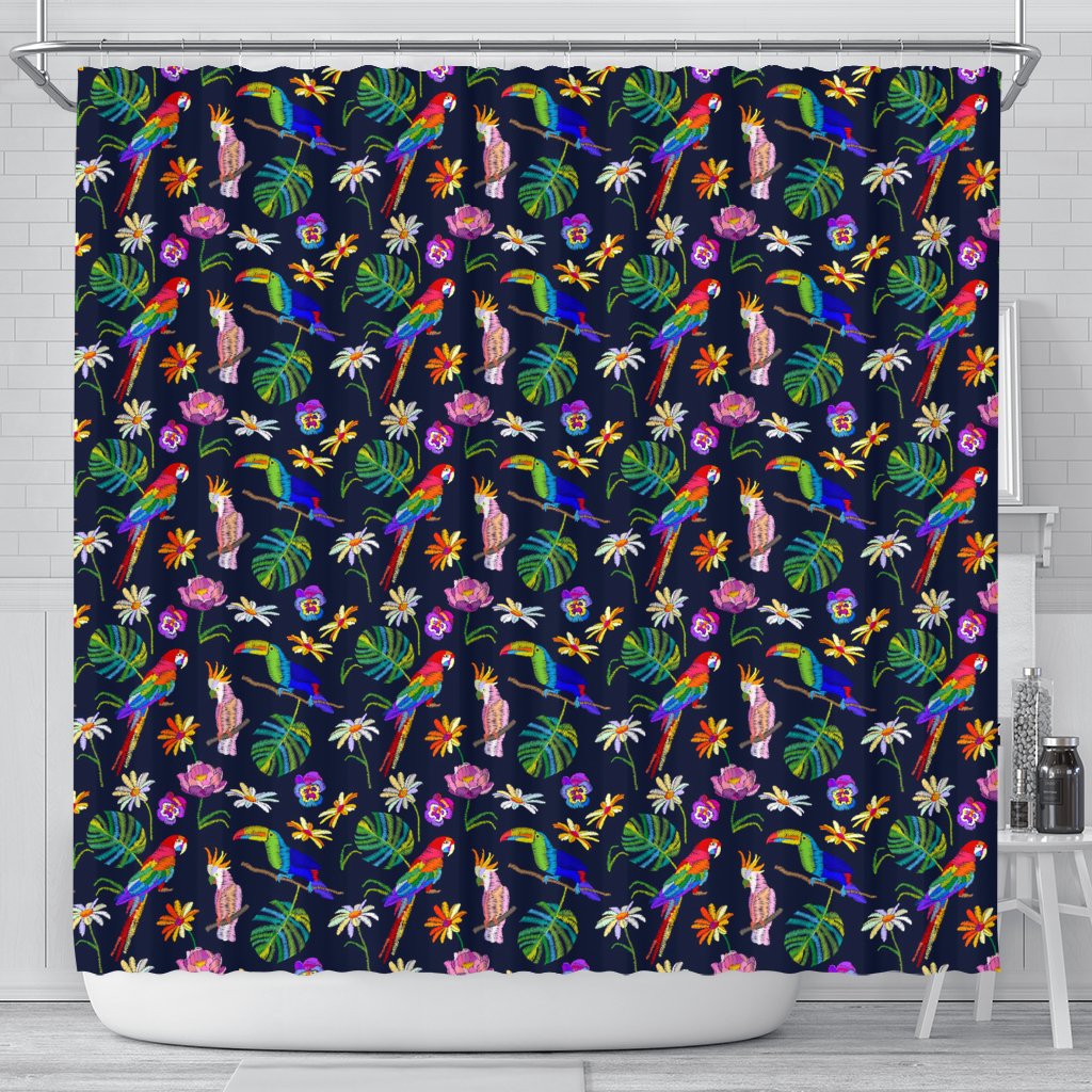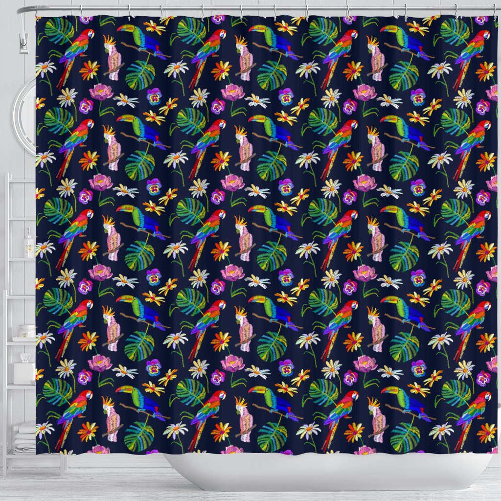 Lovely Parrot Floral Print Shower Curtains-Free Shipping