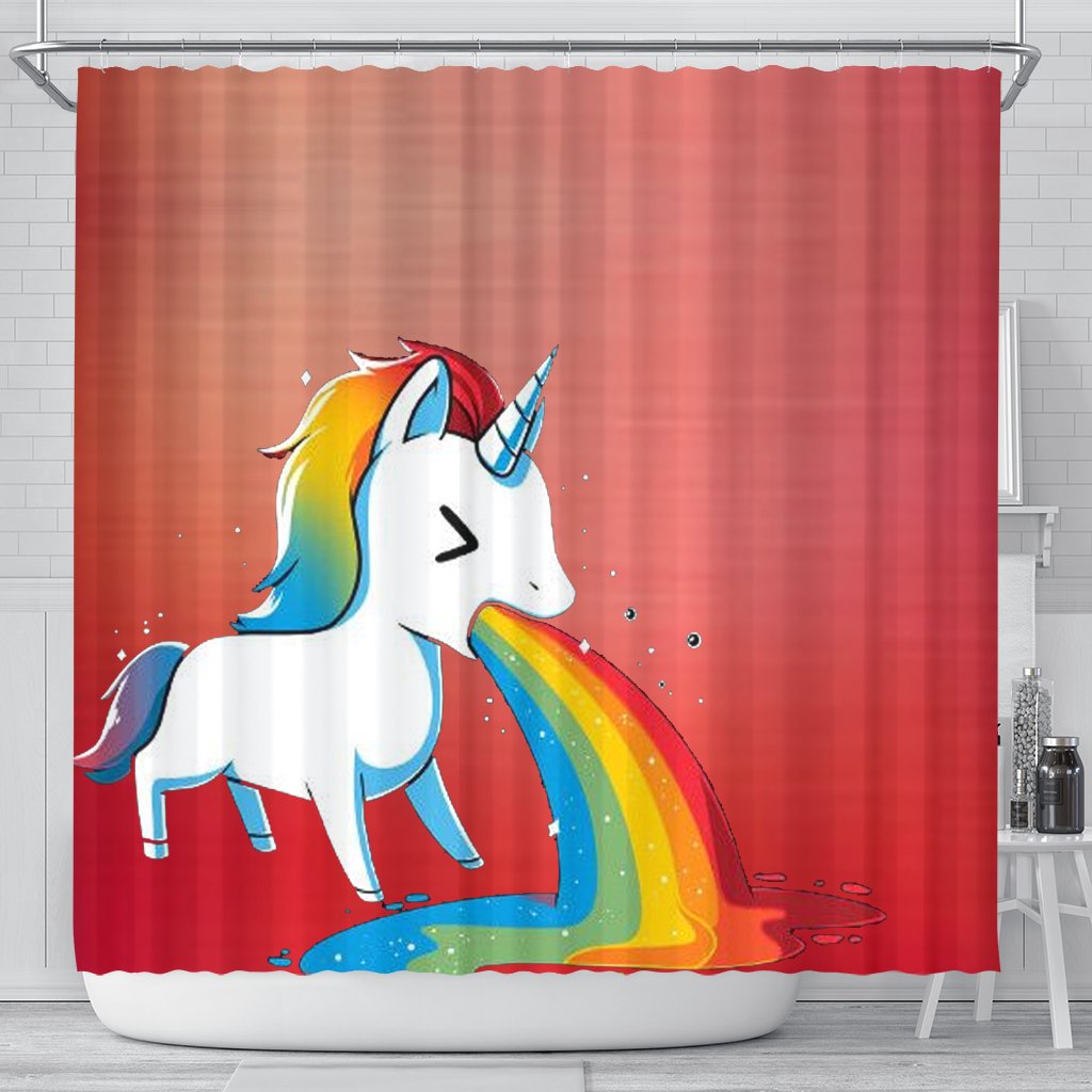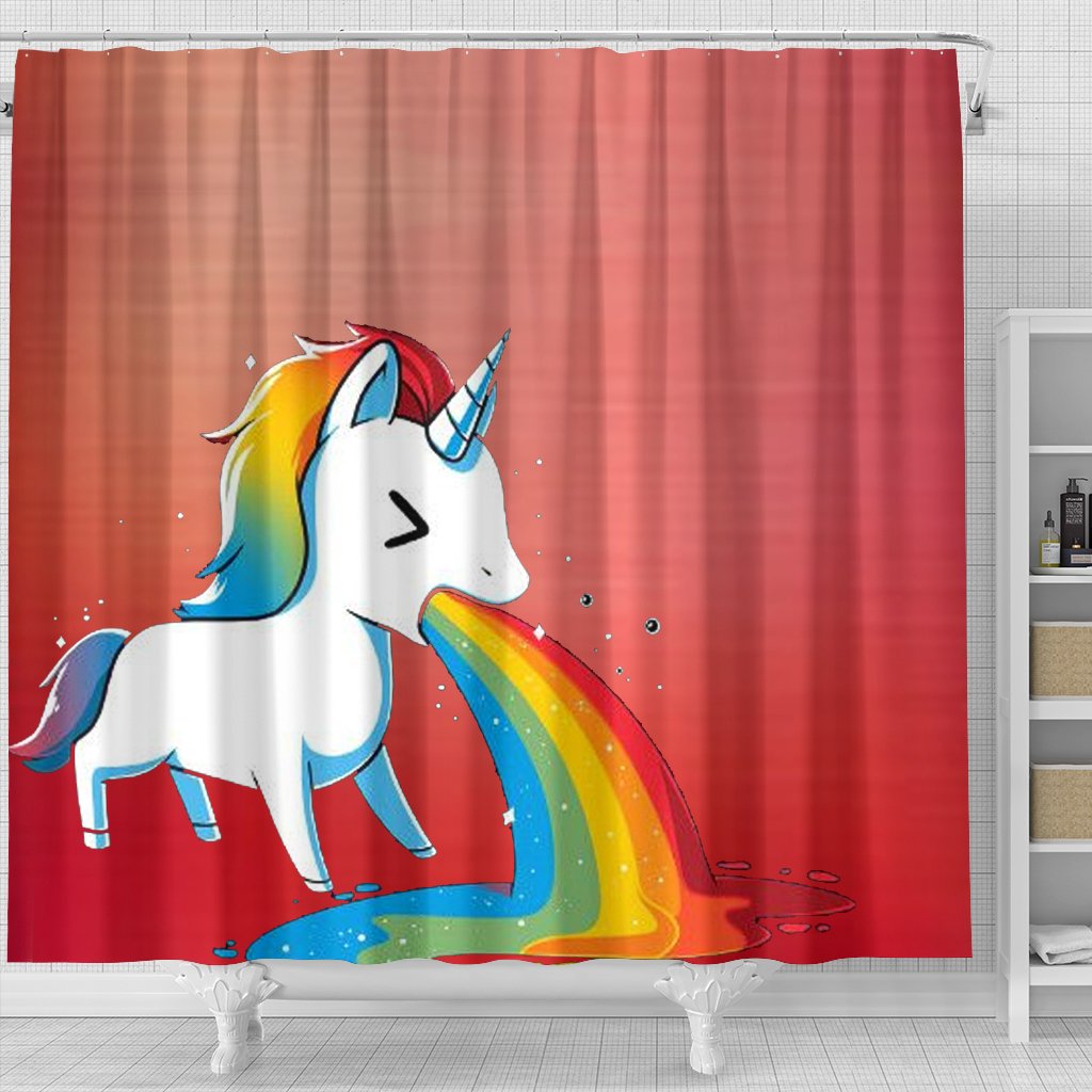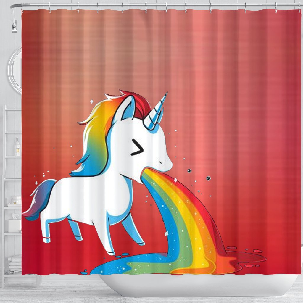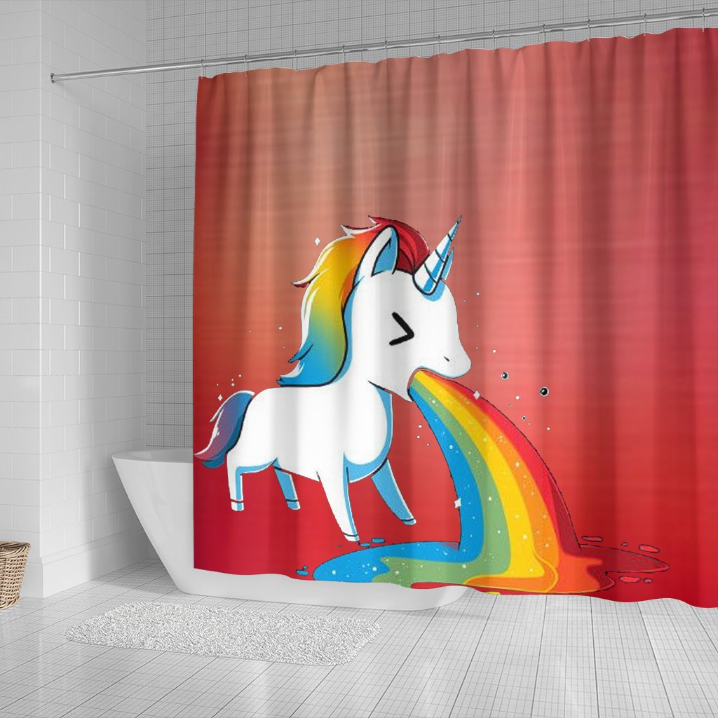 Rainbow Unicorn Print Shower Curtain-Free Shipping