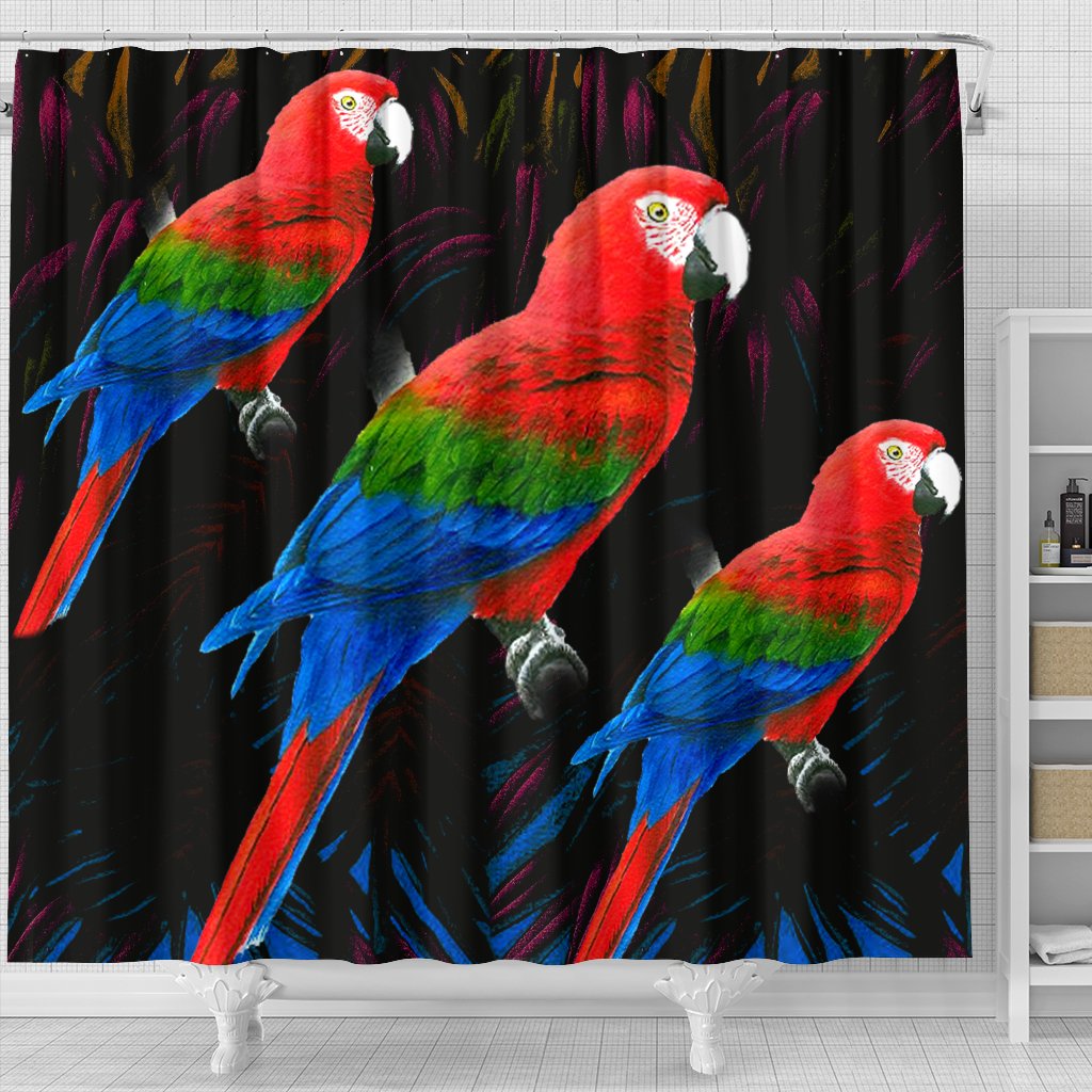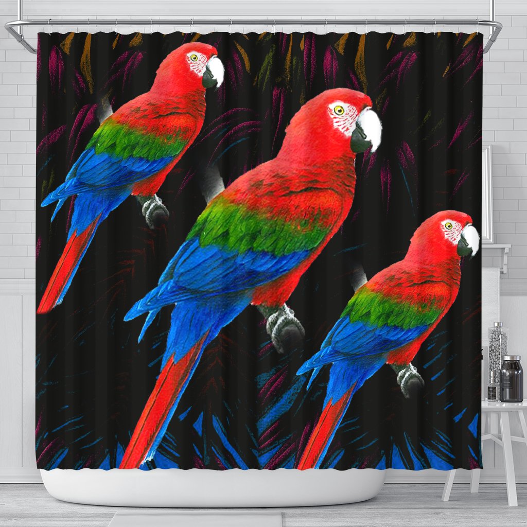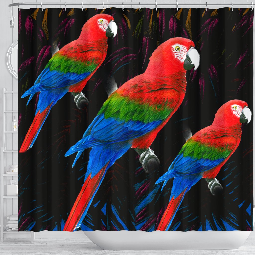 Red And Green Macaw Parrot Print Shower Curtains-Free Shipping