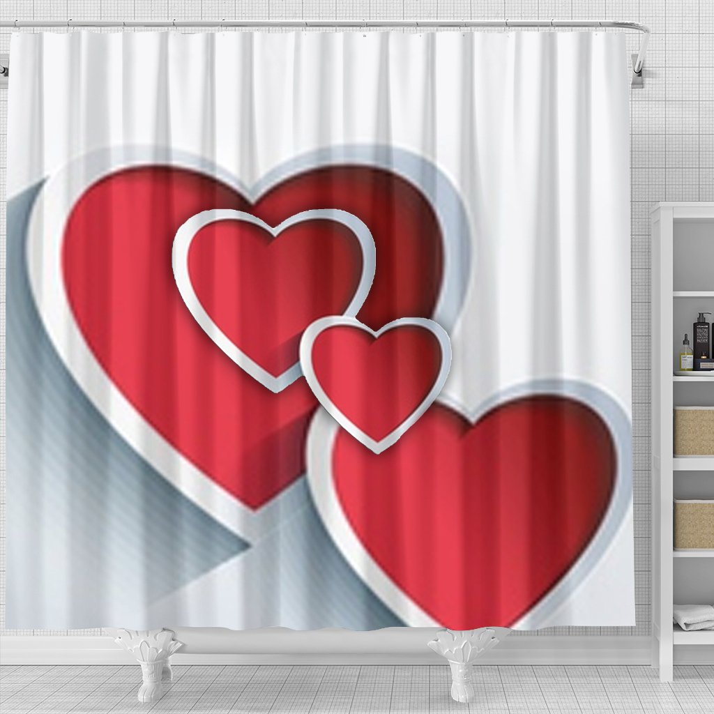 Red Heart Print Shower Curtain-Free Shipping