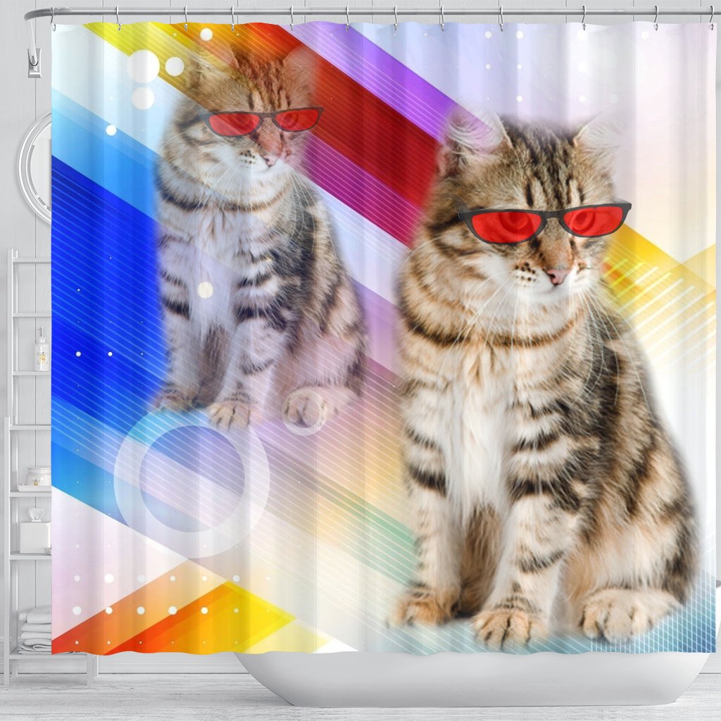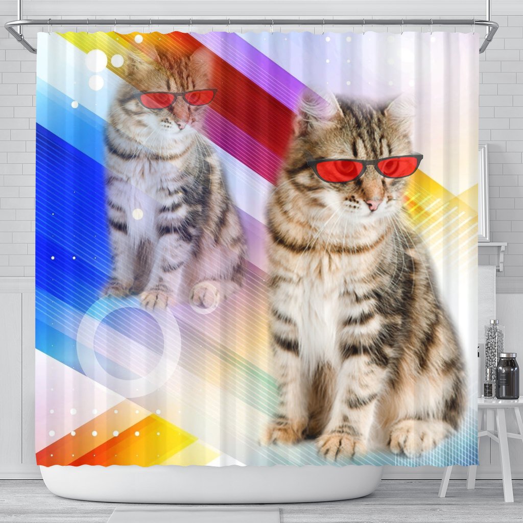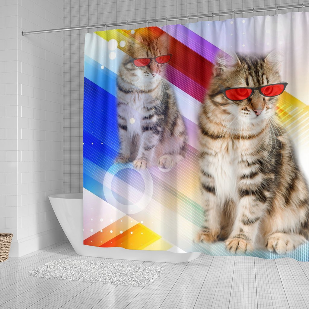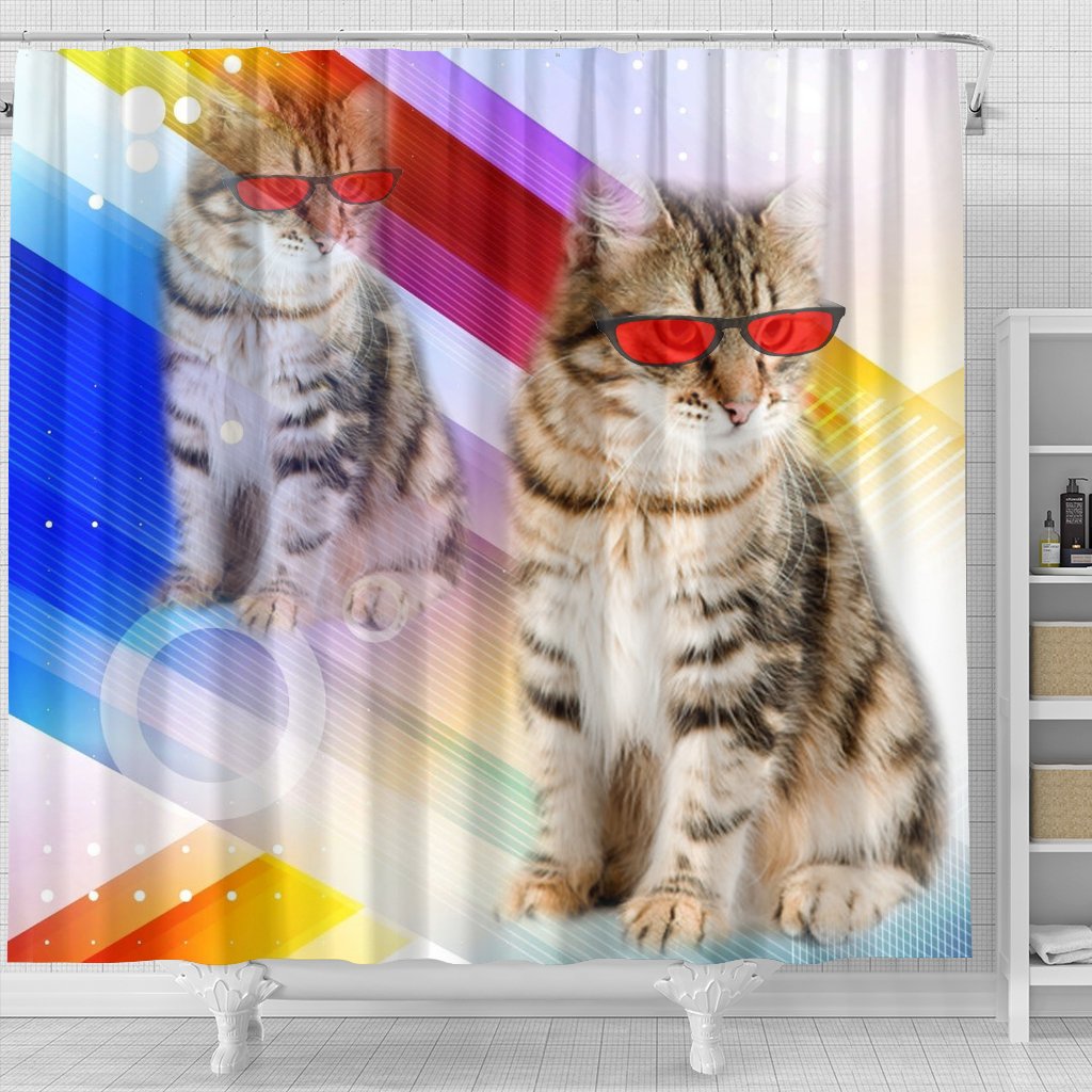 Siberian Cat Red Glasses Print Shower Curtain-Free Shipping
