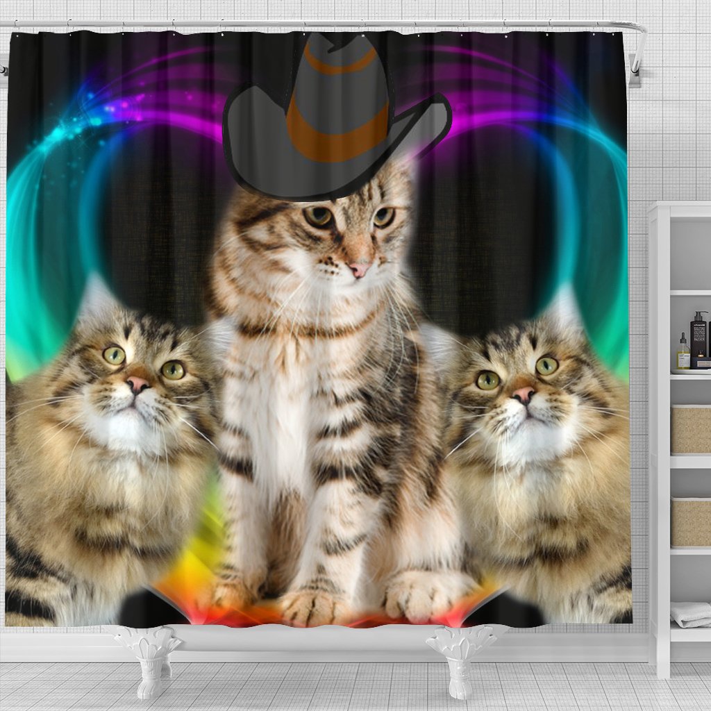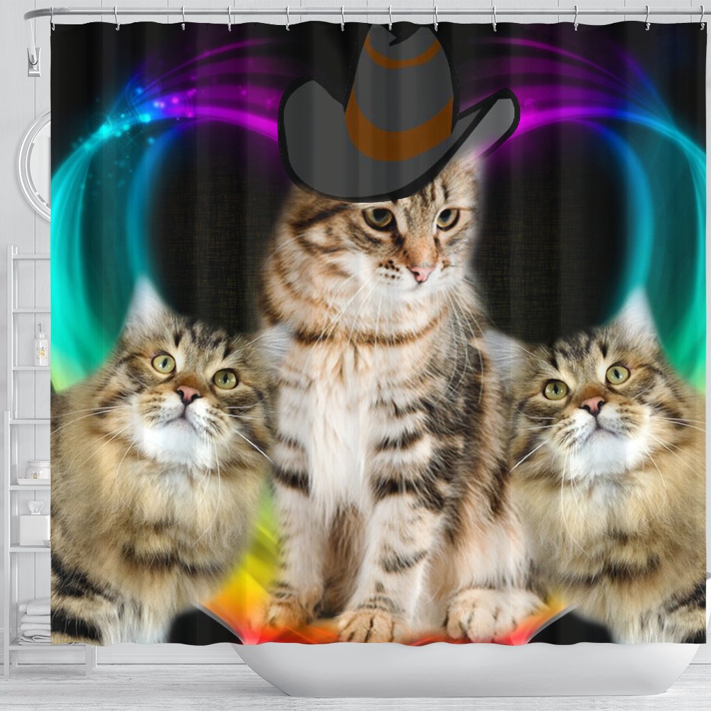 Siberian Cat With Hat Print Shower Curtain-Free Shipping
