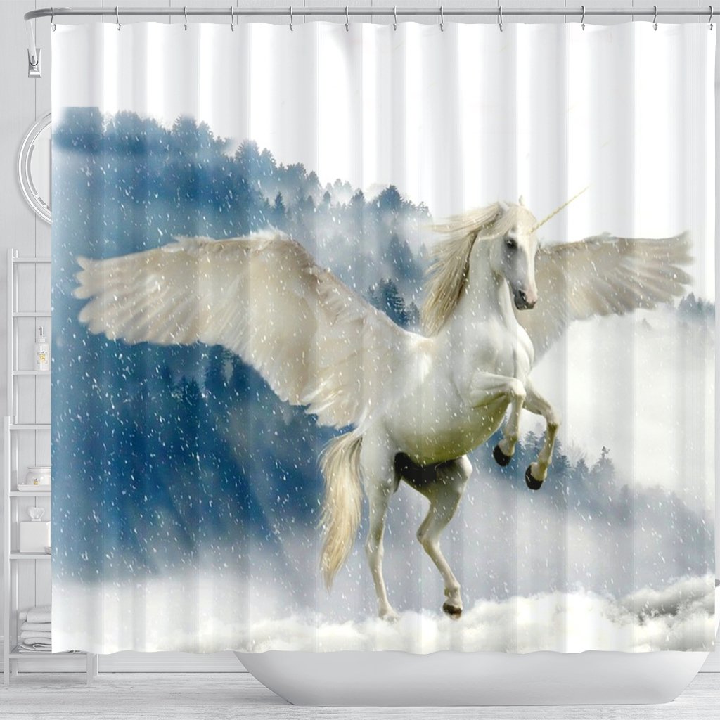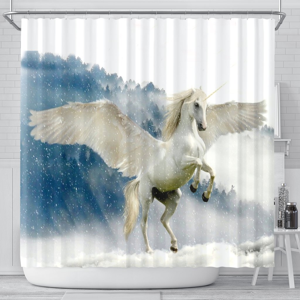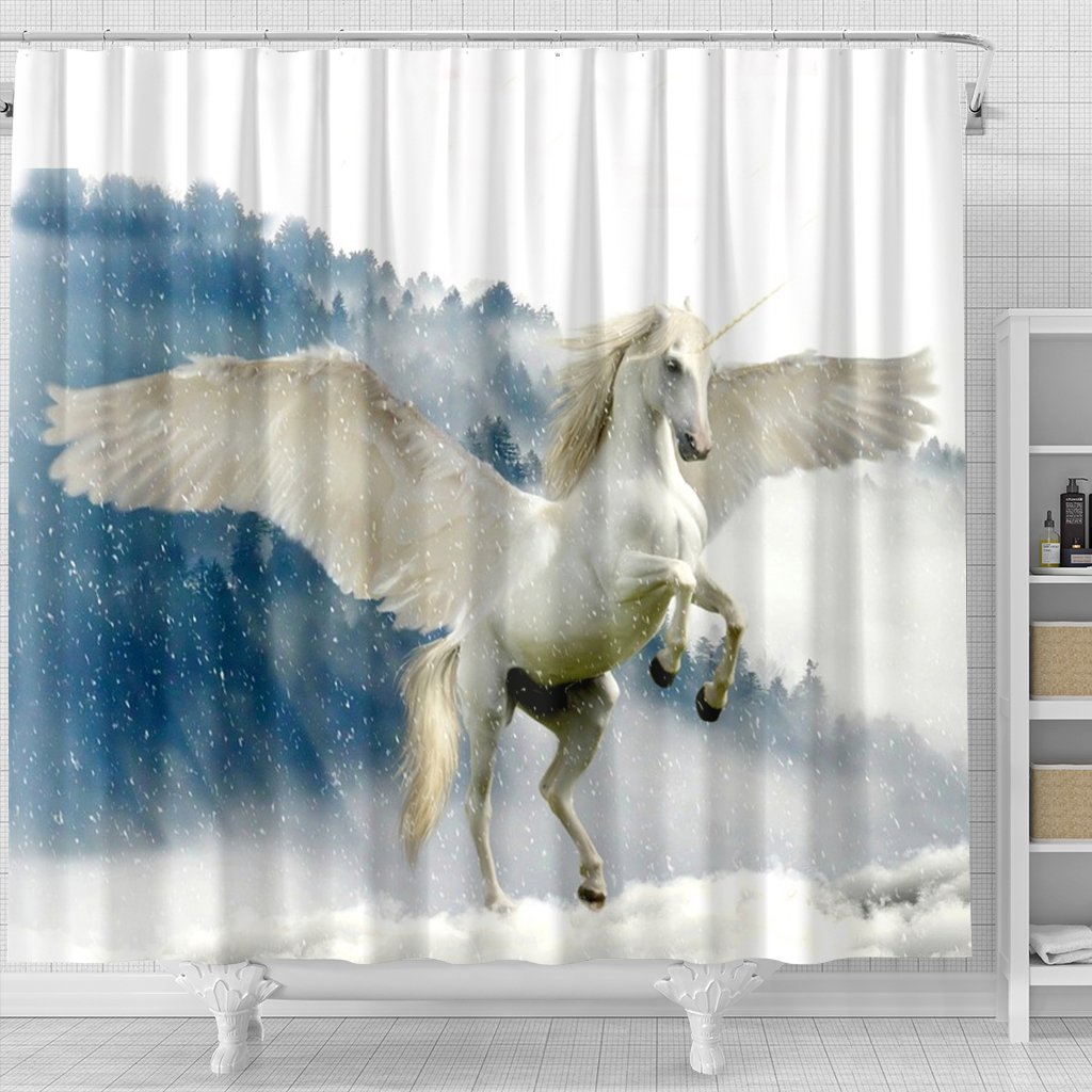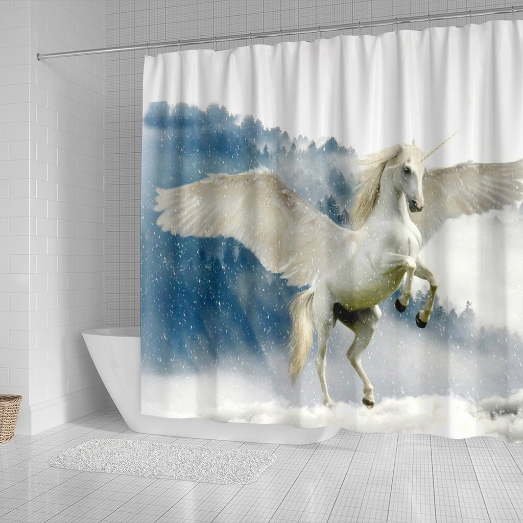 Unicorn In Snowfall Print Shower Curtain-Free Shipping