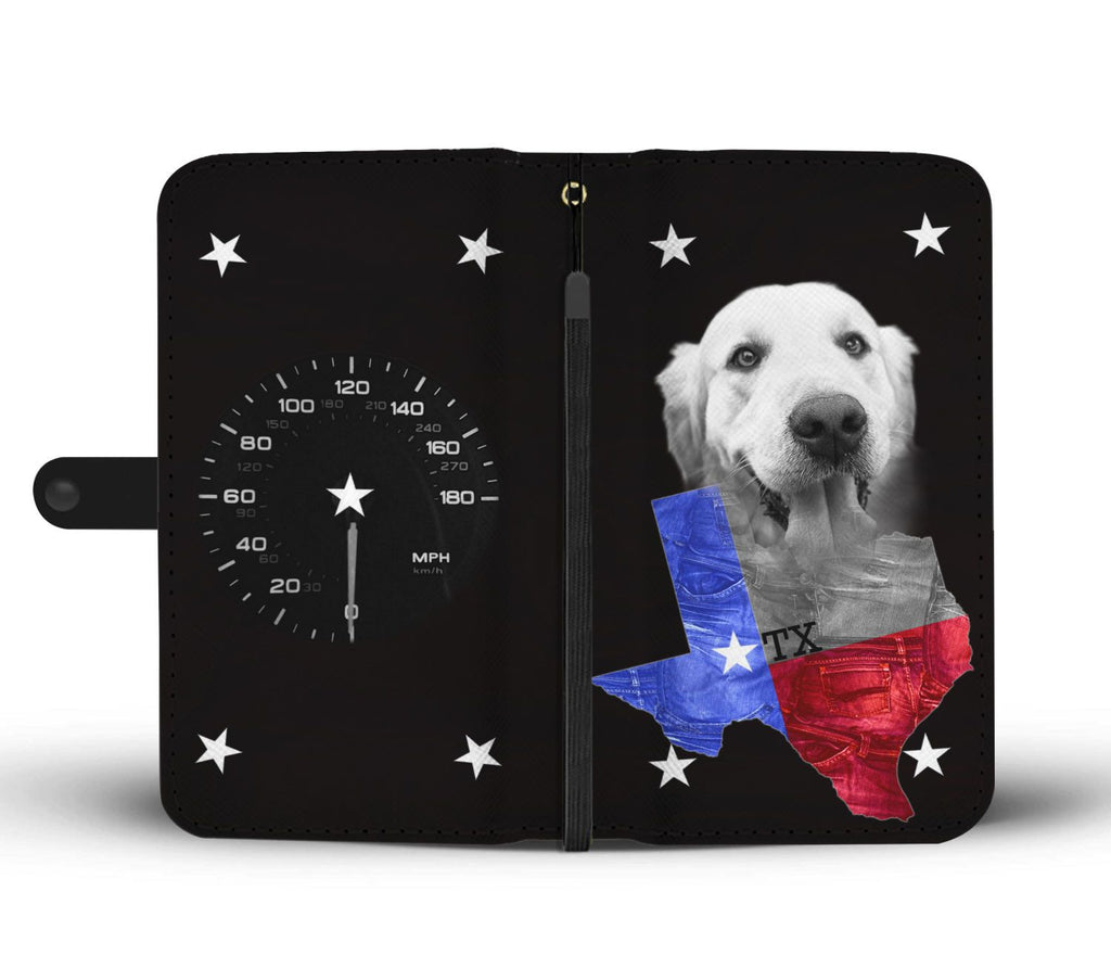 Golden Retriever On Black Print Wallet Case- Free Shipping-TX State
