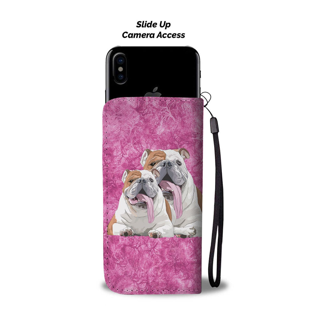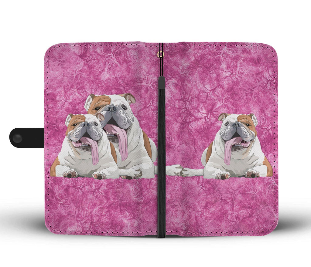Bulldog On Pink Print Wallet Case-Free Shipping