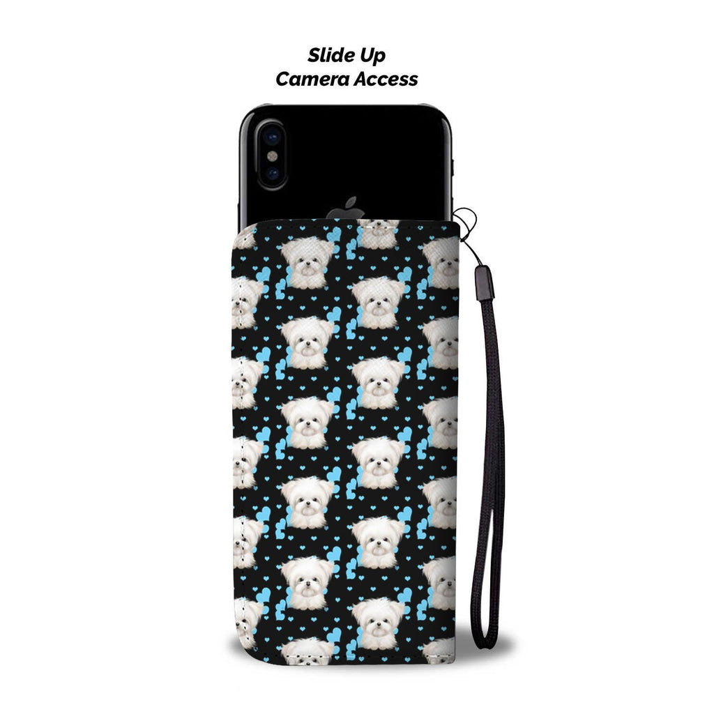 Cute Maltese Dog Pattern Print Wallet Case-Free Shipping