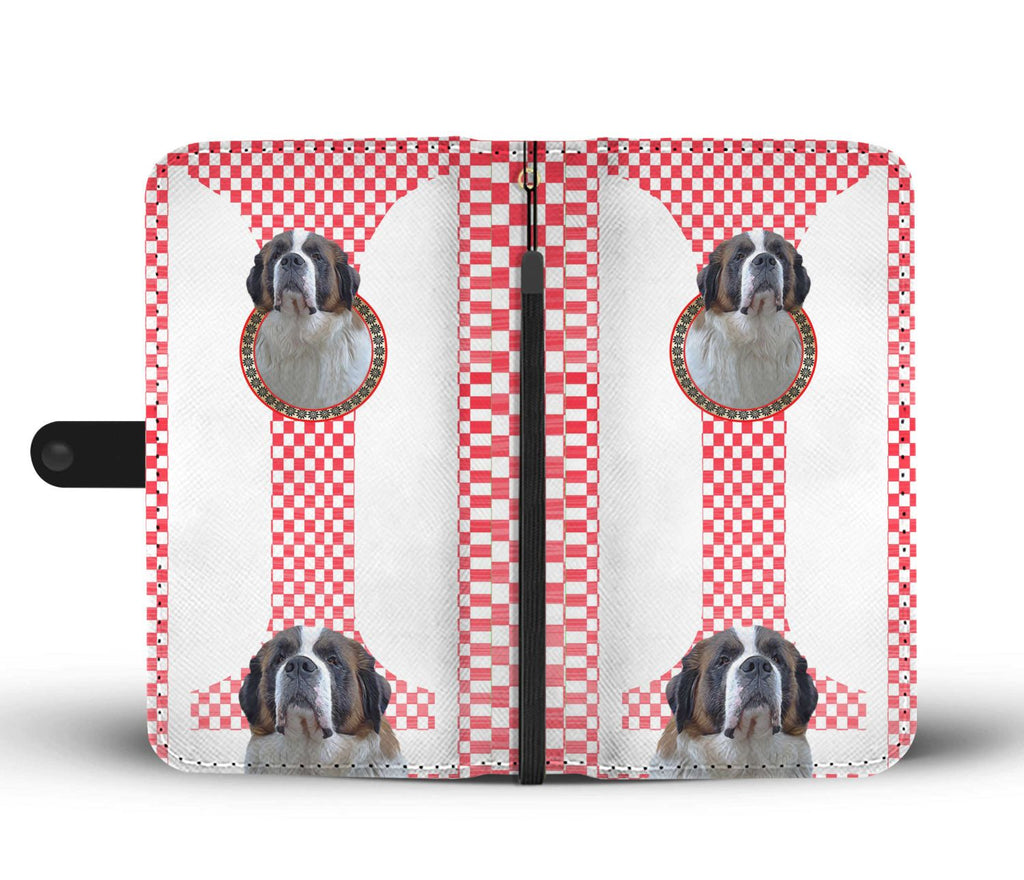 Cute Saint Bernard Dog On Red Print Wallet Case-Free Shipping
