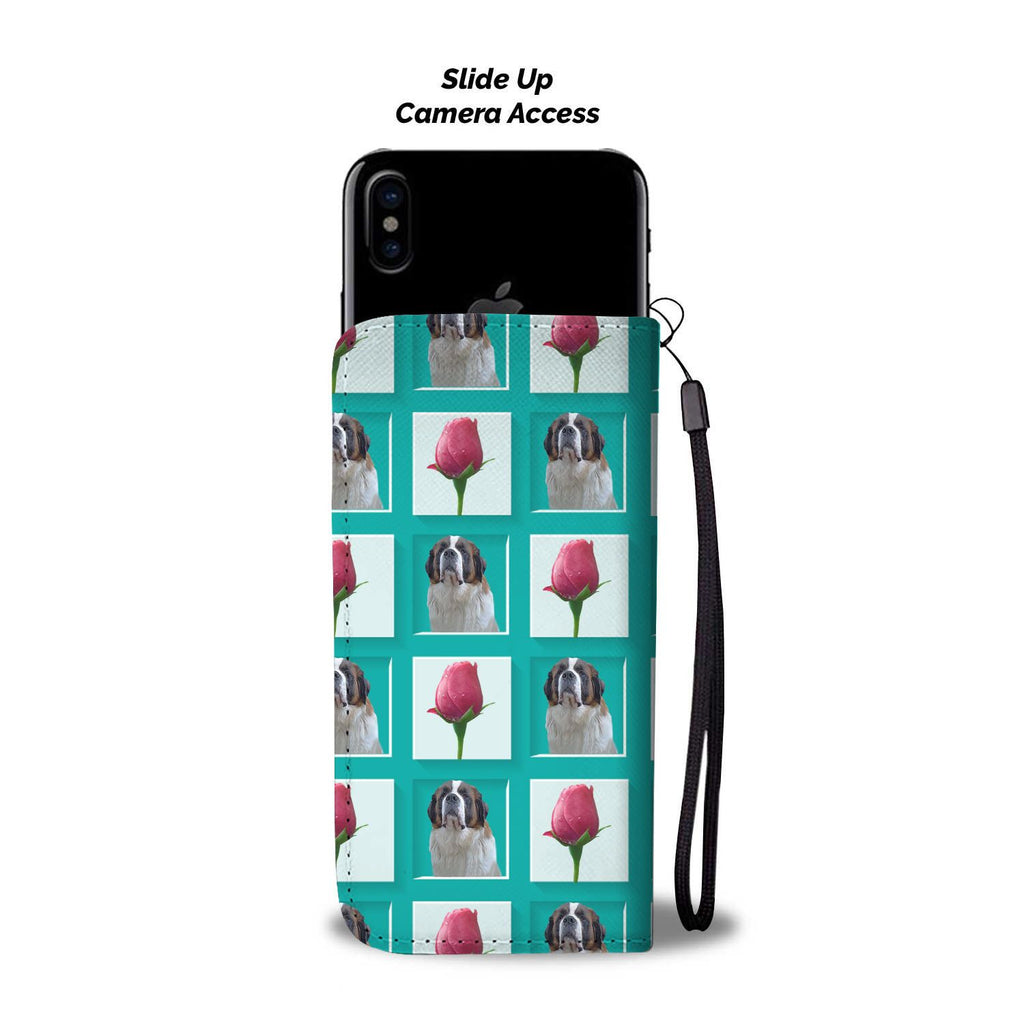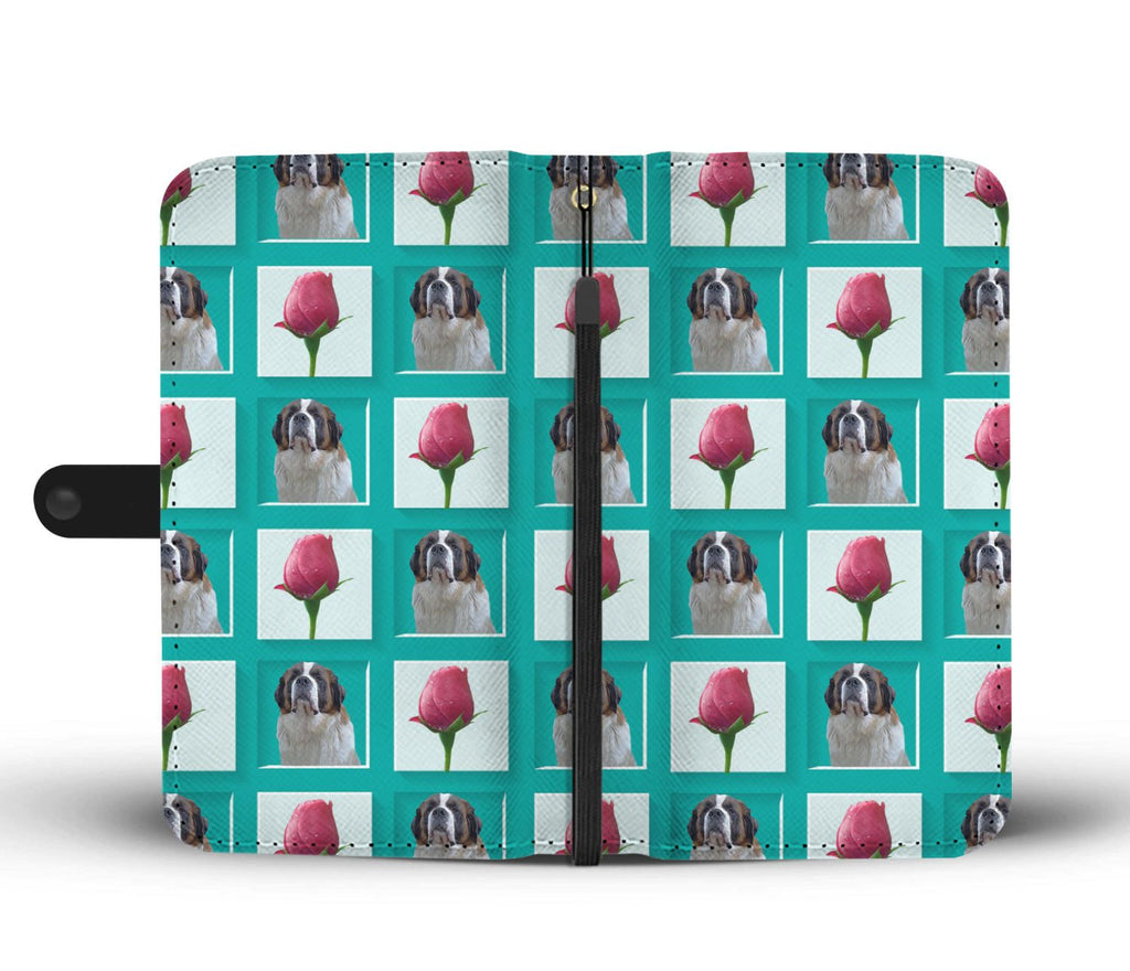 Cute Saint Bernard Dog With Red Rose Print Wallet Case-Free Shipping