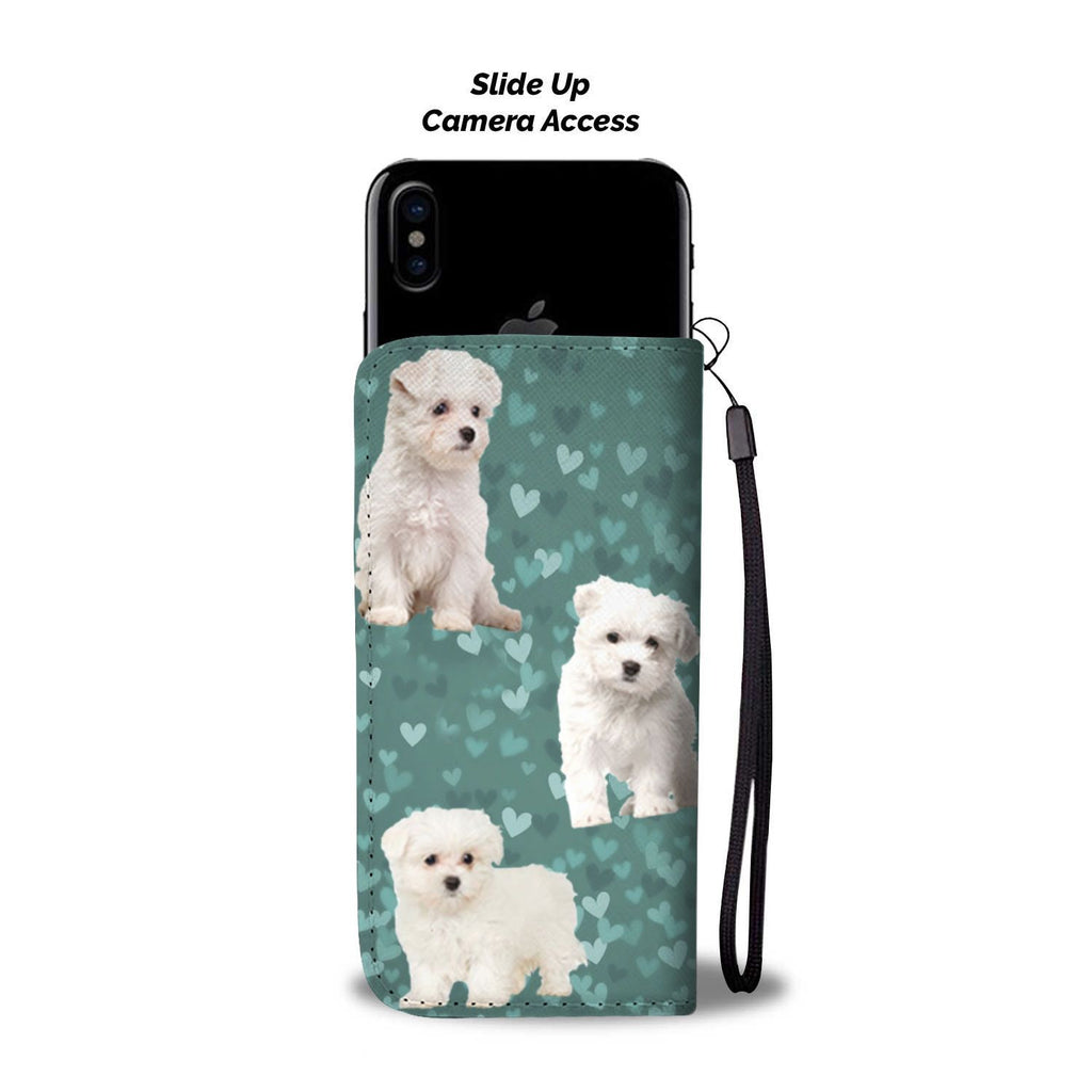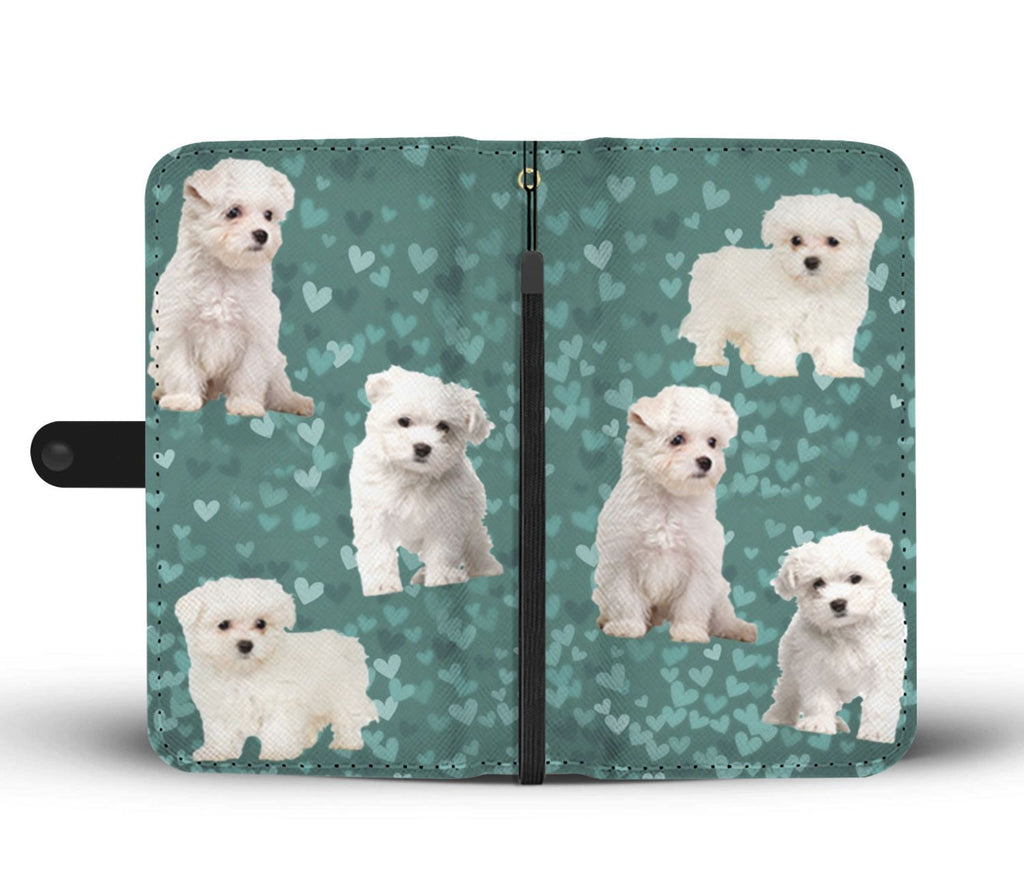 Maltese Dog On Hearts Print Wallet Case-Free Shipping