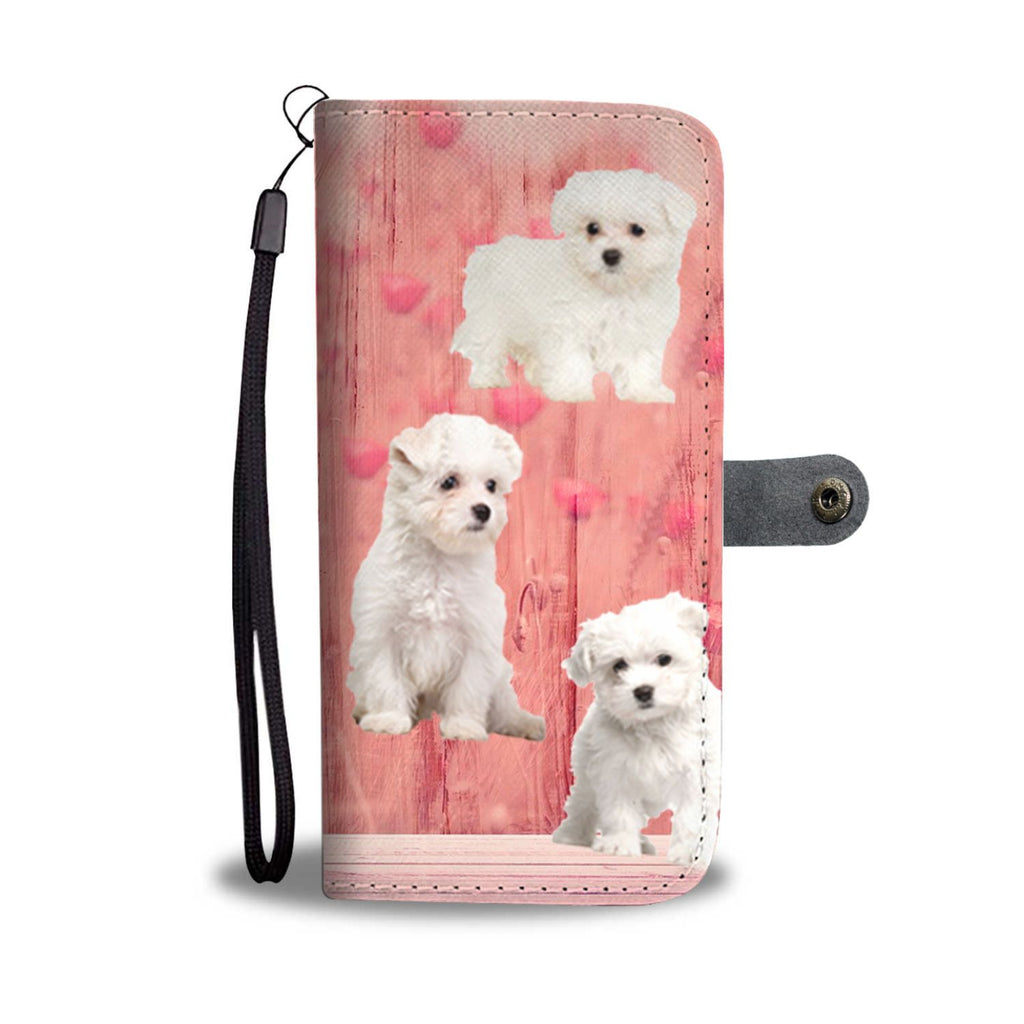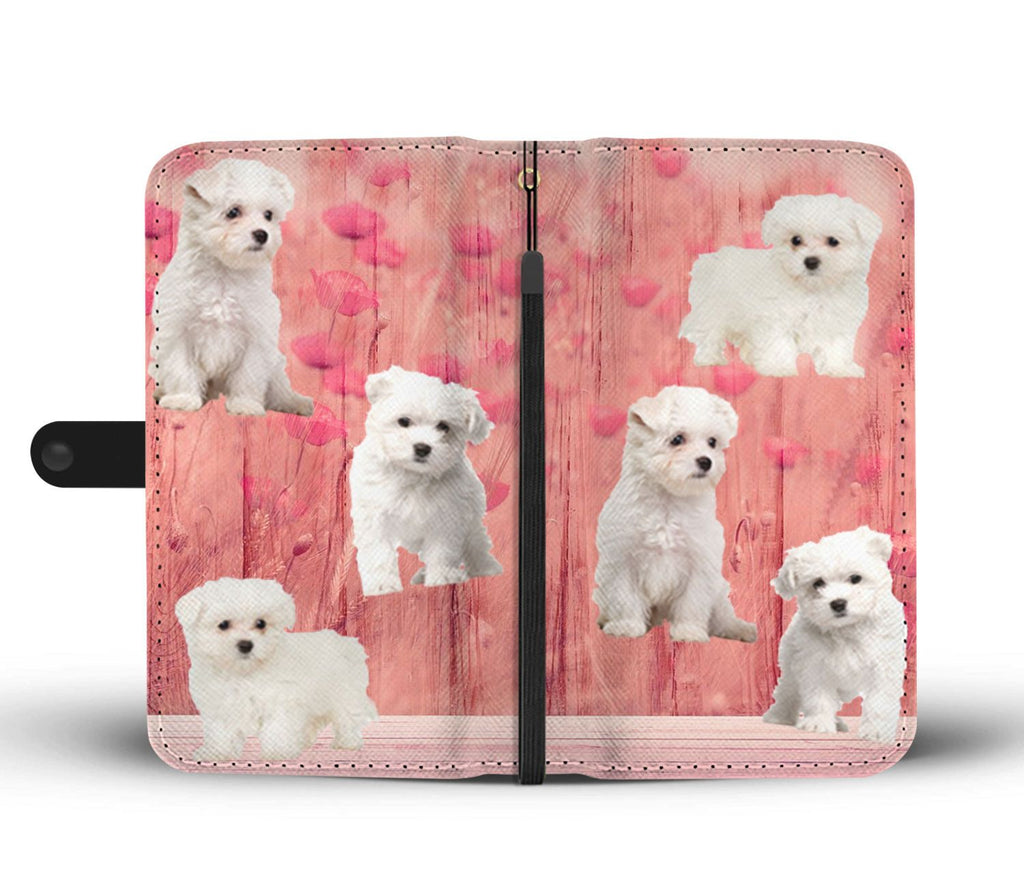 Maltese Dog On Pink Print Wallet Case-Free Shipping