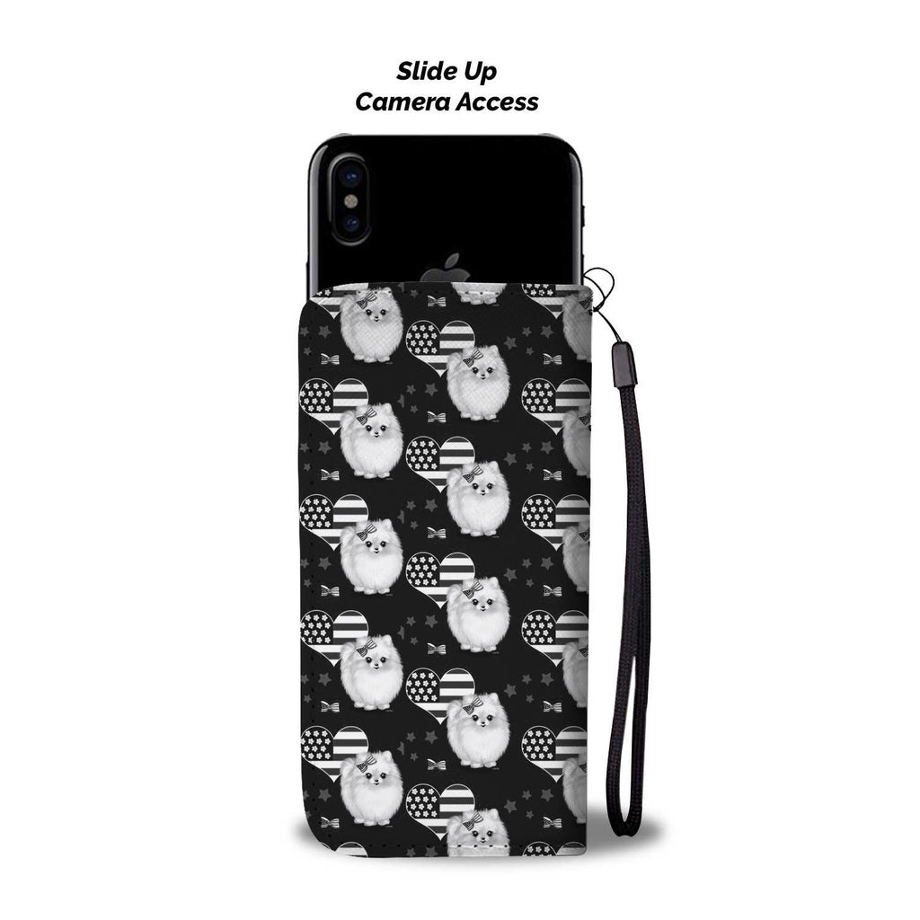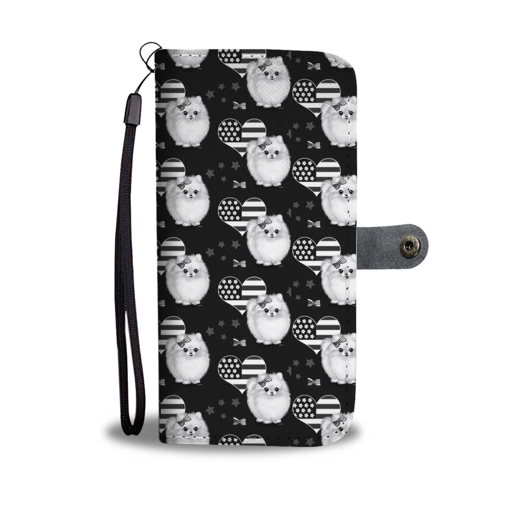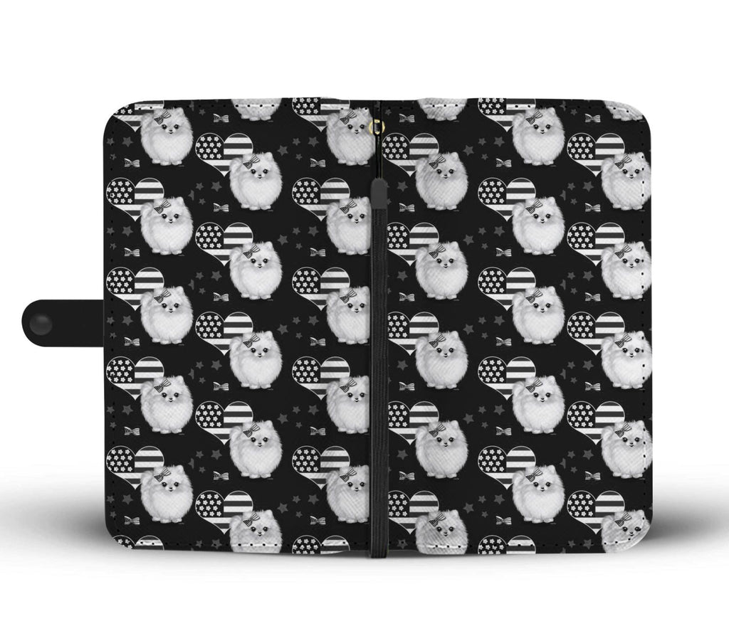 Pomeranian Dog Black White Patterns Print Wallet Case-Free Shipping (For Pomeranian Lovers)