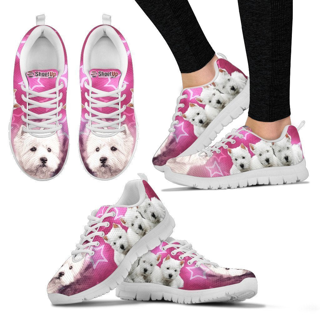 West Highland White Terrier On Pink Print Running Shoes For Women- Free Shipping